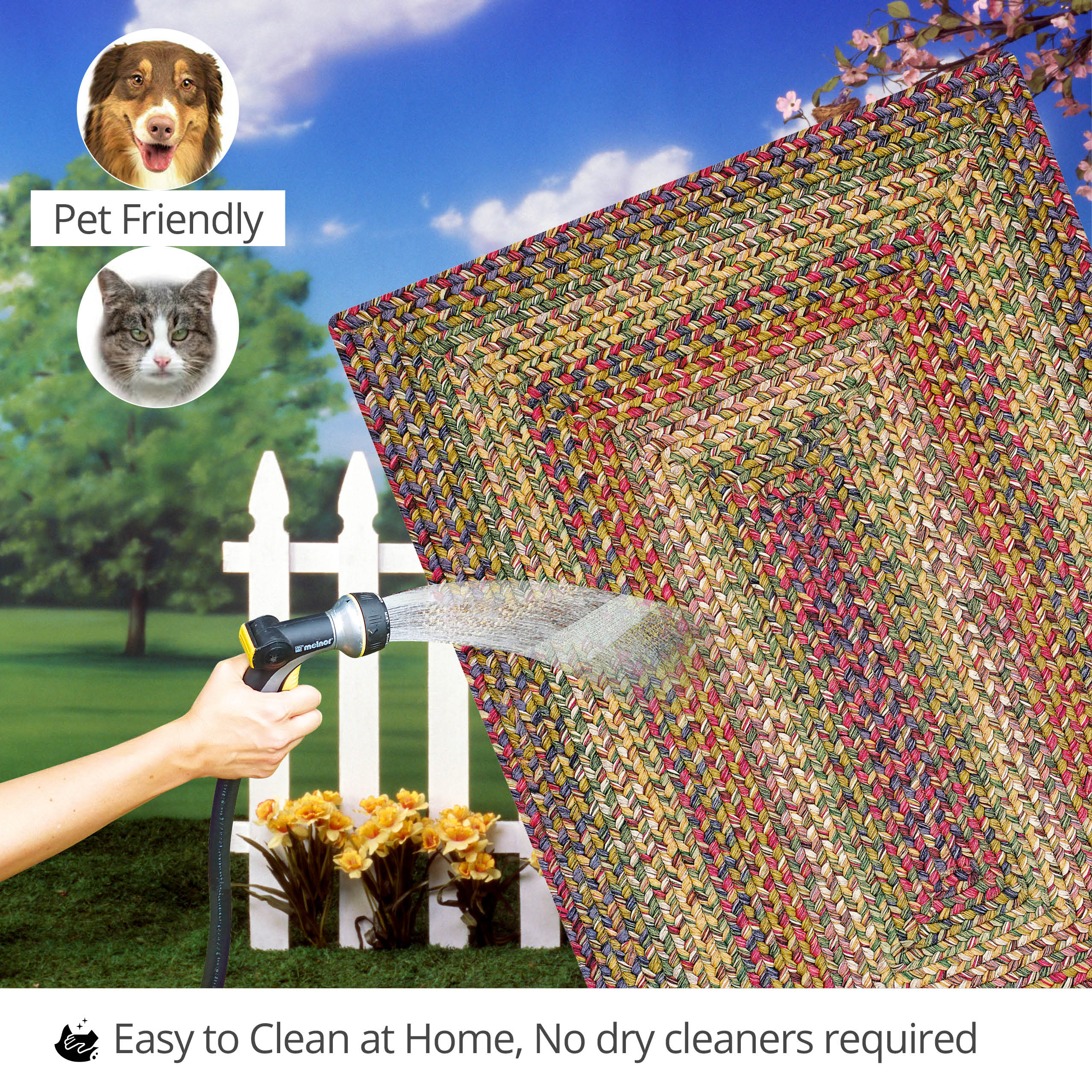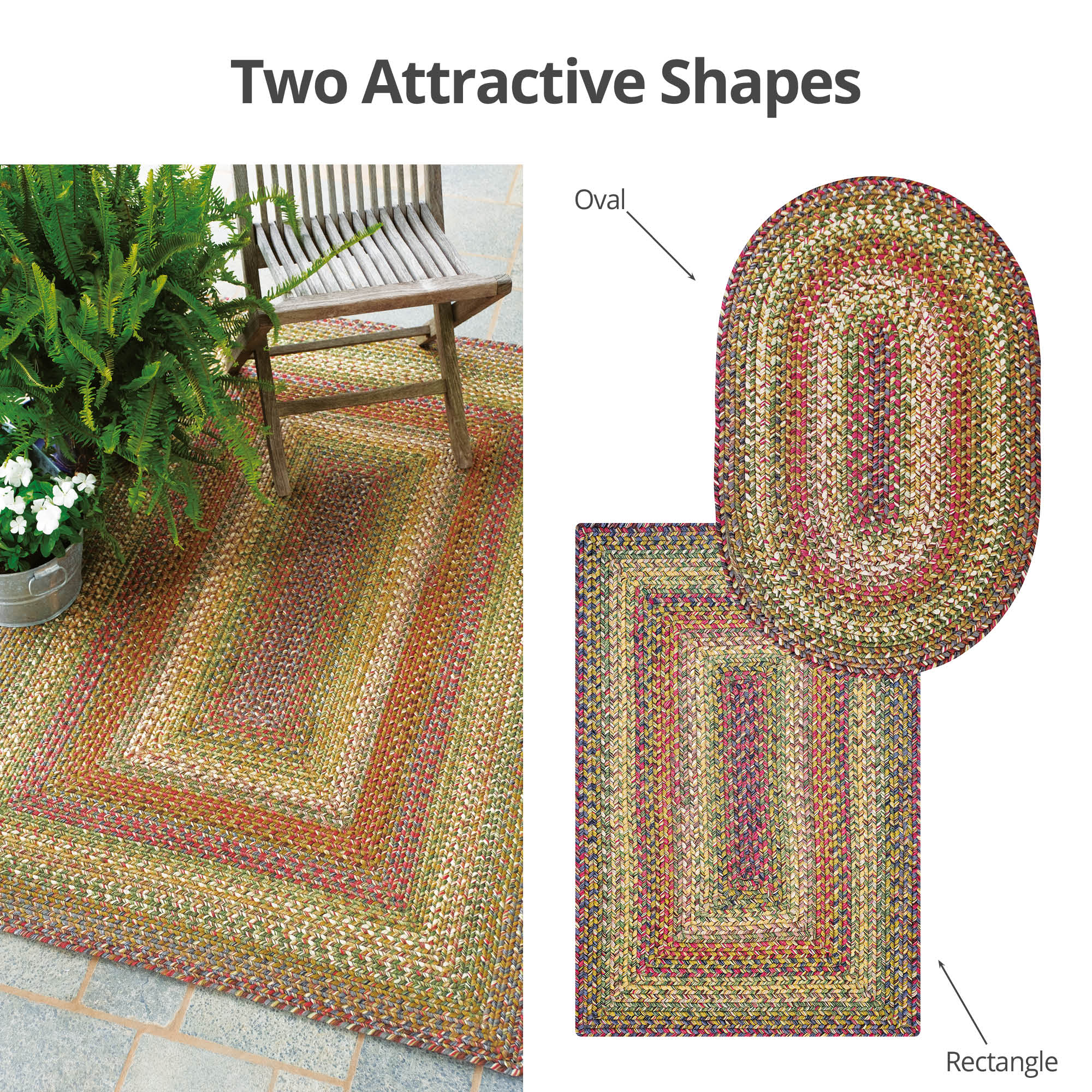 Lush greens, cool slate grey, vibrant burgundy and tropical tan invoke images of a zen-like paradise. Ultra Durable braided rugs are the most versatile and dependable rugs. Made from our exclusive high-performance Ultra Durable yarn, this collection is washable, indoor/outdoor-friendly, mold and mildew-resistant, ideal for active families, and spill-proof. Our customers' favorite rugs, these classic designs are made exclusively by Homespice. These rugs are easy to care for - just hose them clean! Homespice is a family-owned company that is committed to producing high-quality, handcrafted, unique products, and providing excellent customer service CHARACTERISTICS: Slight irregularities such as minor size, dye lot, and pattern variations are inherent to all handcrafted products