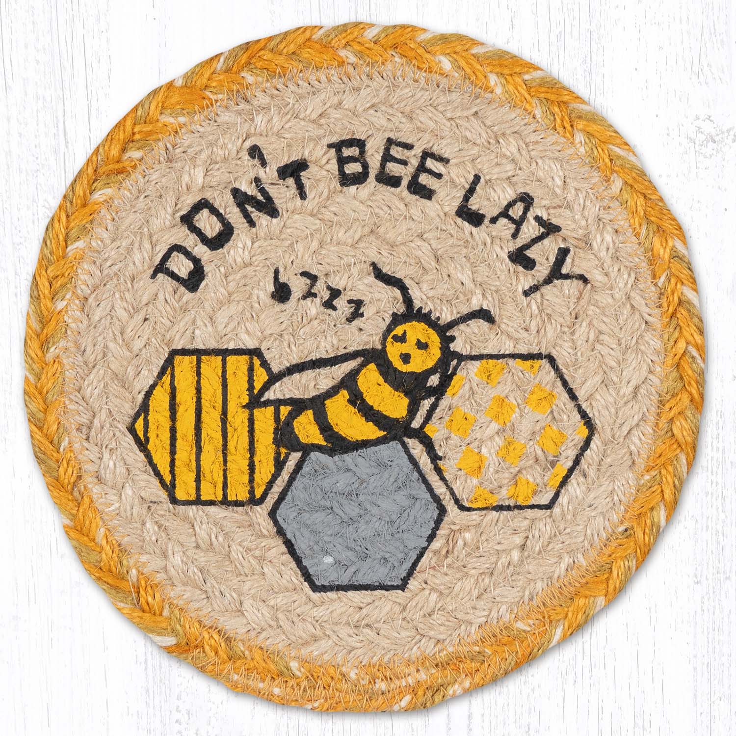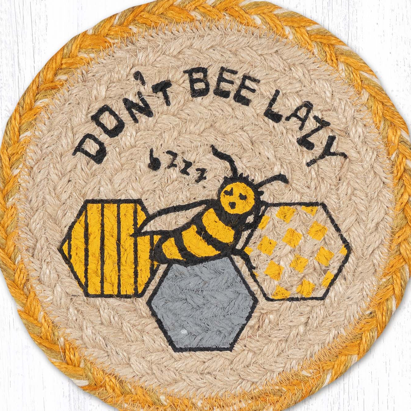 Honey Bee Large Coaster – 7" x 7" Round Braided Jute Hand-Stenciled Coaster