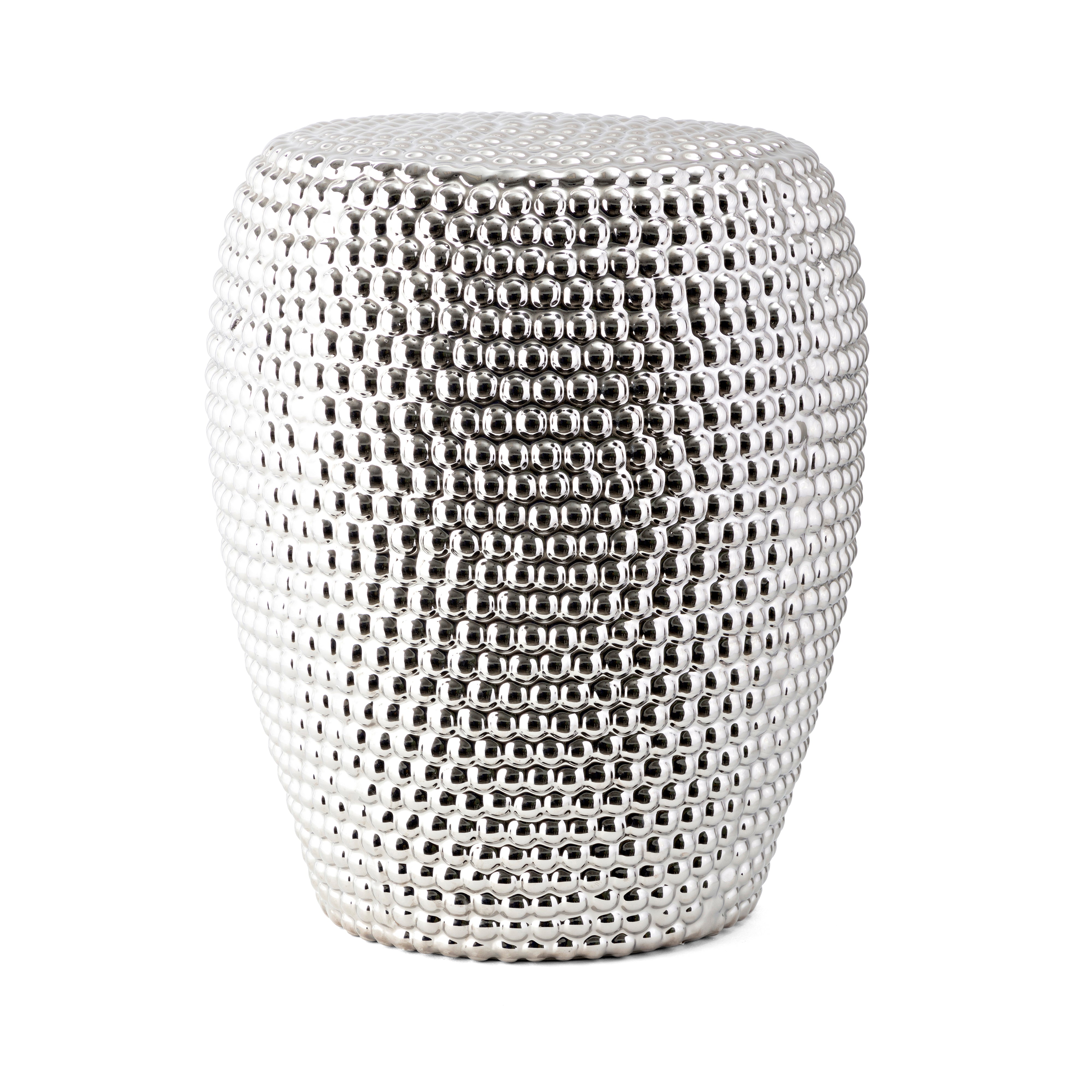 - Unique textured surface in ceramic and finished in silver metallic glaze adds glamour and style to any decor