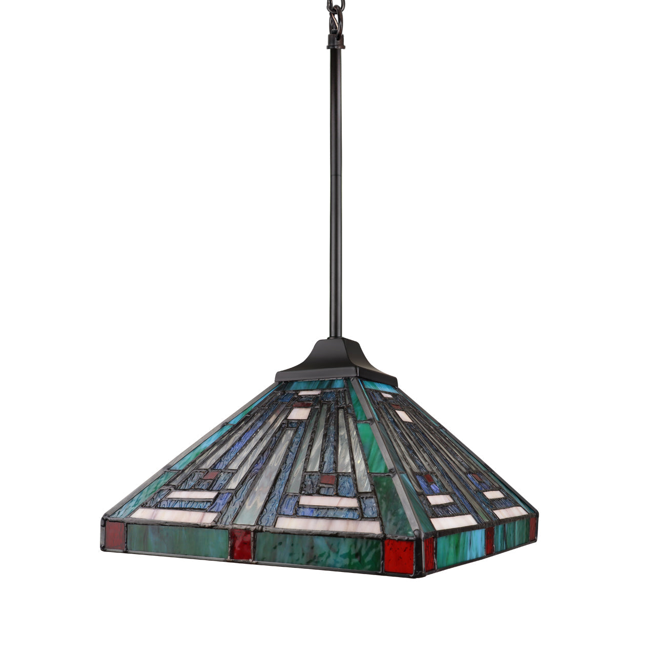 SKU - CHL-CH3T359BM12-DP1- 1-light mini pendant with a mission-style stained glass shade