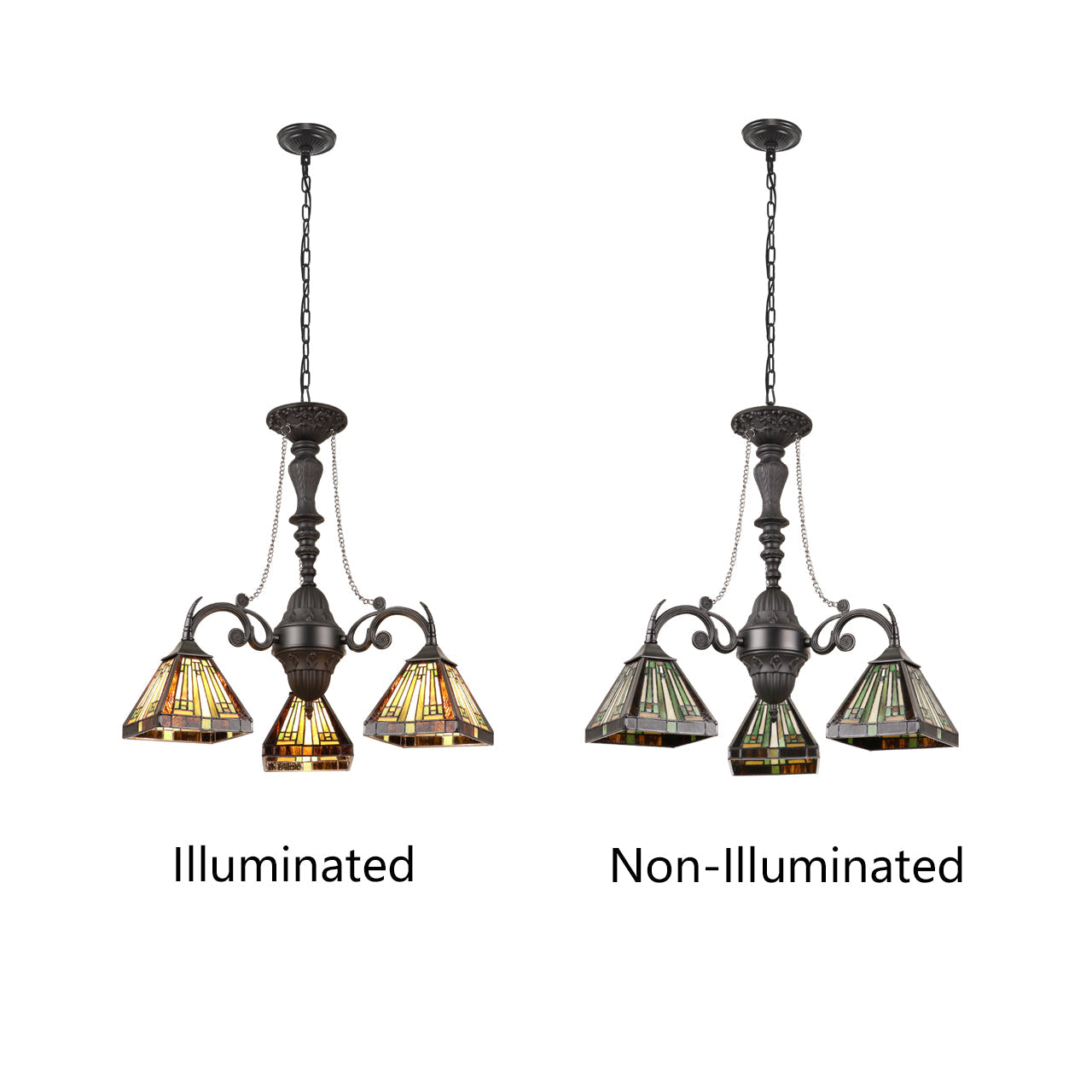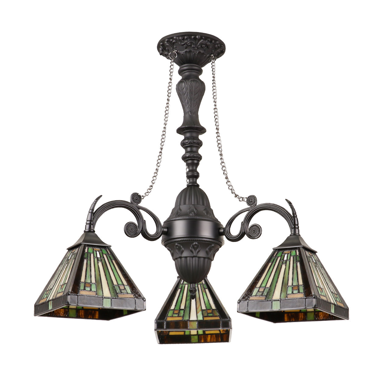 Innes Mission Stained Glass Chandelier – 22.64" H Tiffany-Style 3-Light Indoor Ceiling Fixture By Chloe Lighting