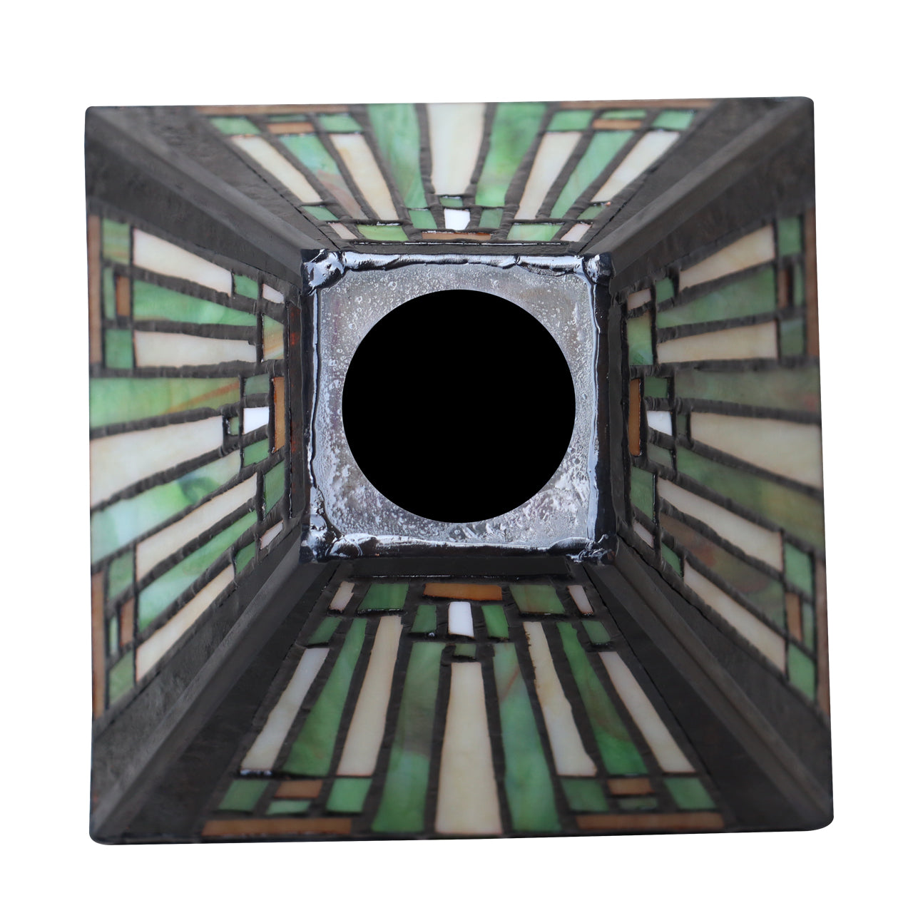- Handcrafted stained glass shades made with 152 hand-cut glass pieces per shade