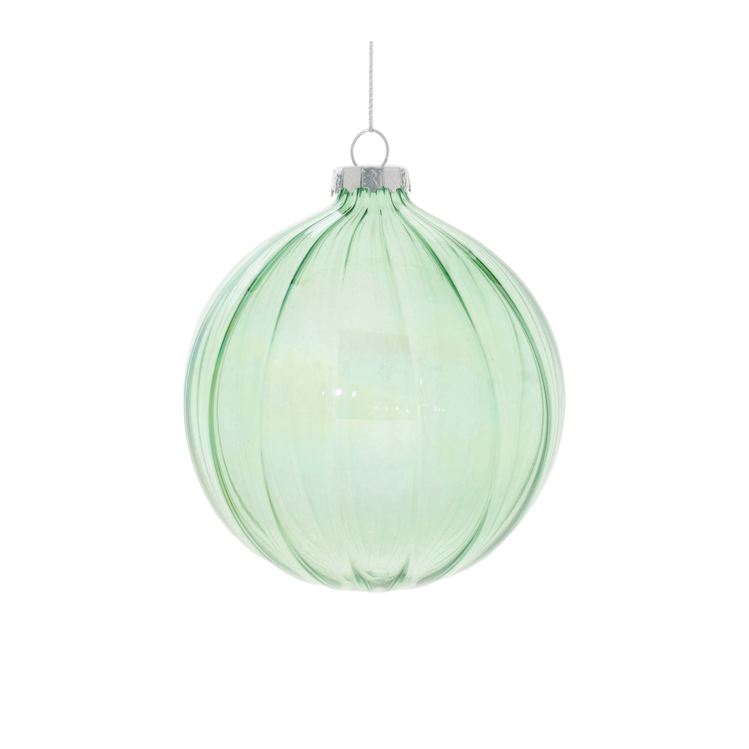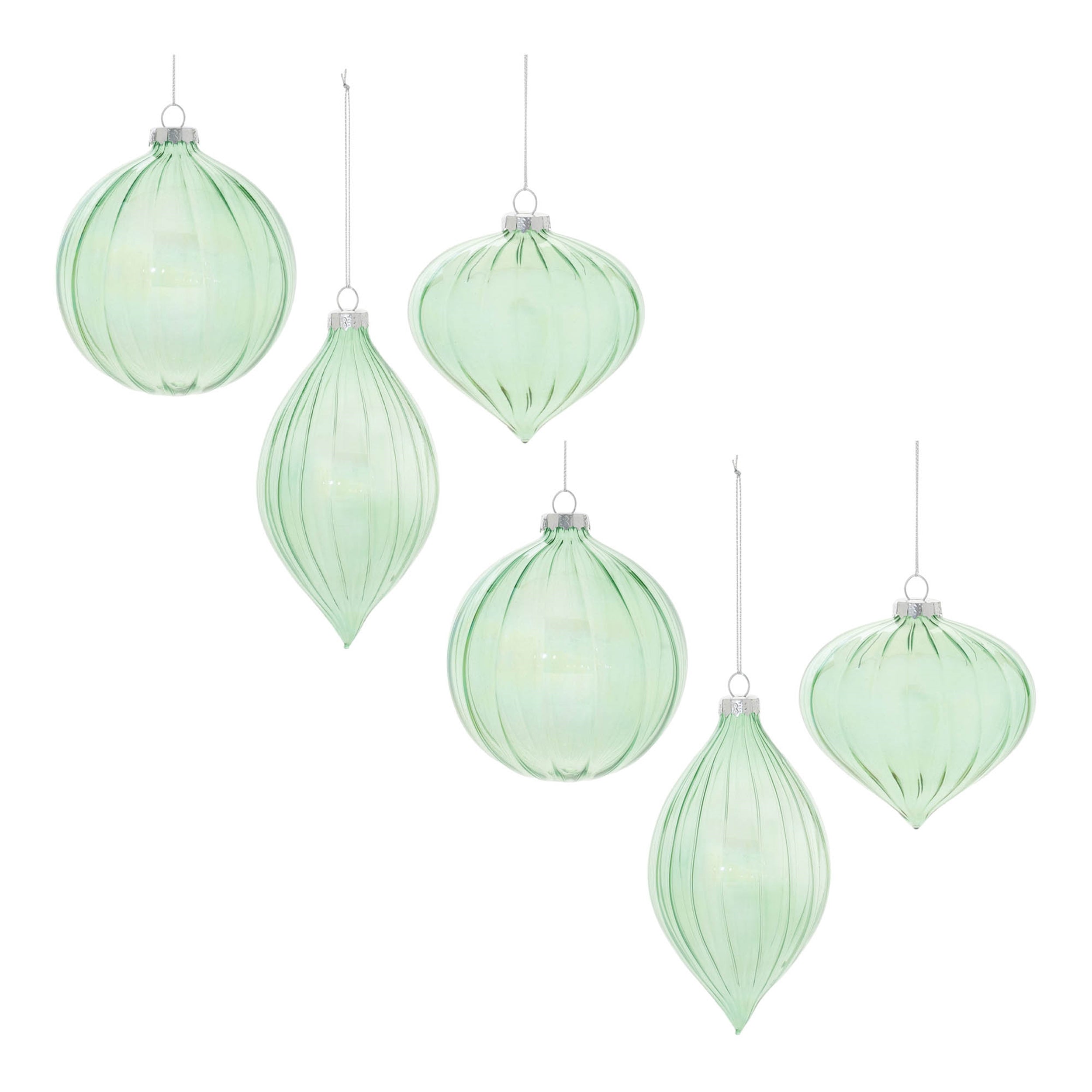 Iridescent Ribbed Ornament Set of 6 5.5"H Green Glass Glam Holiday Decor