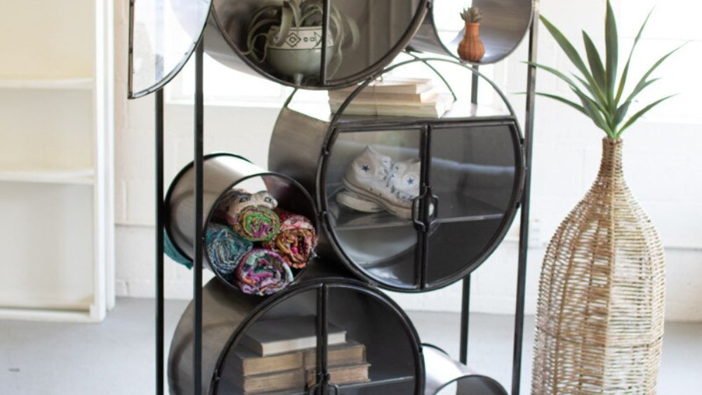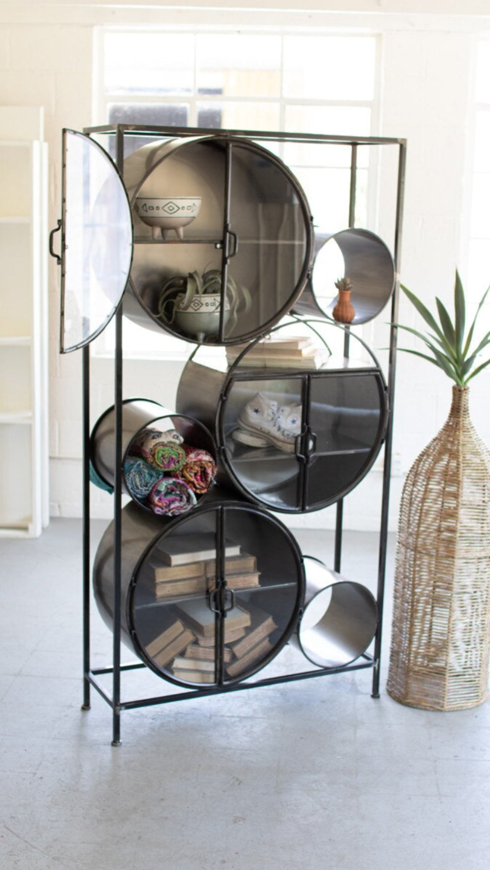 Iron and Glass Circular Shelving Unit – 71.5" Tall by Kalalou