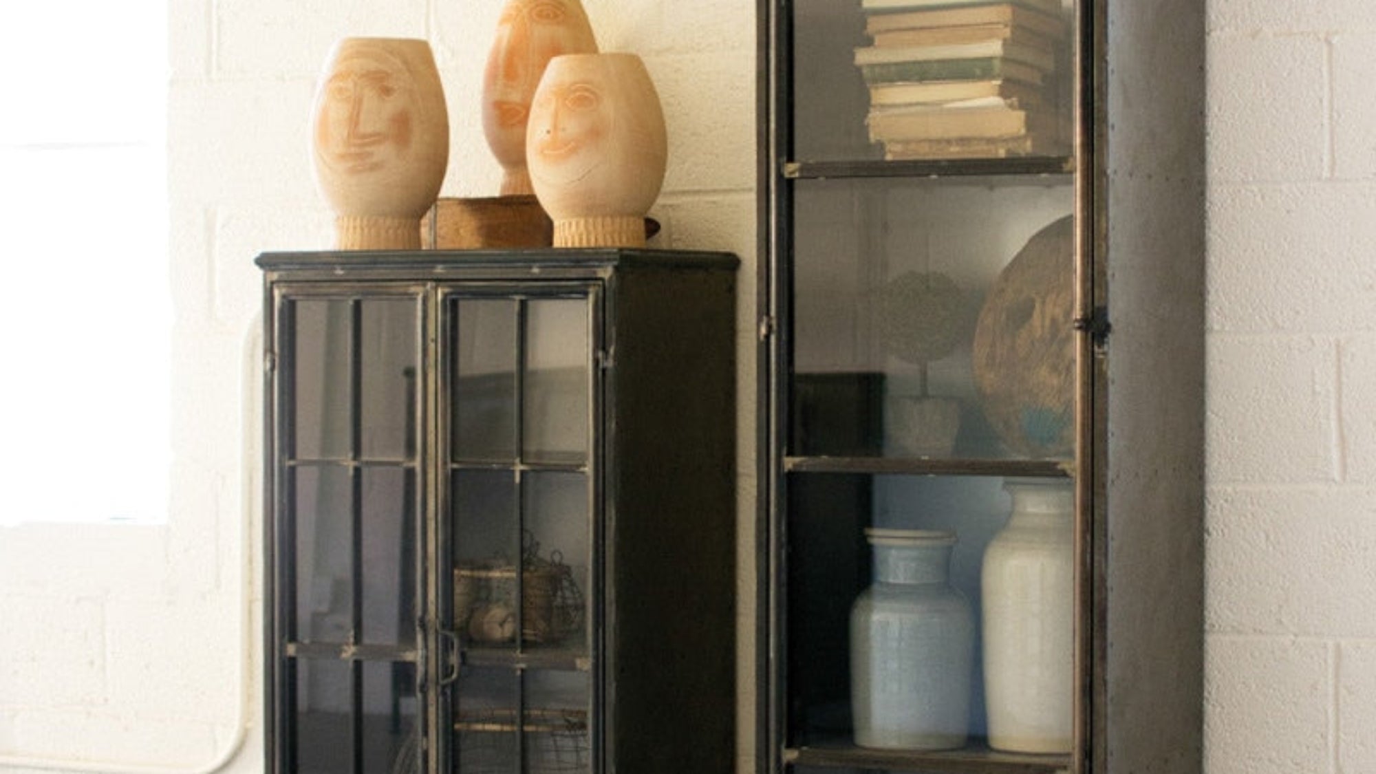 Iron and Glass Two-Door Apothecary Cabinet – 49" Tall Storage Cabinet by Kalalou