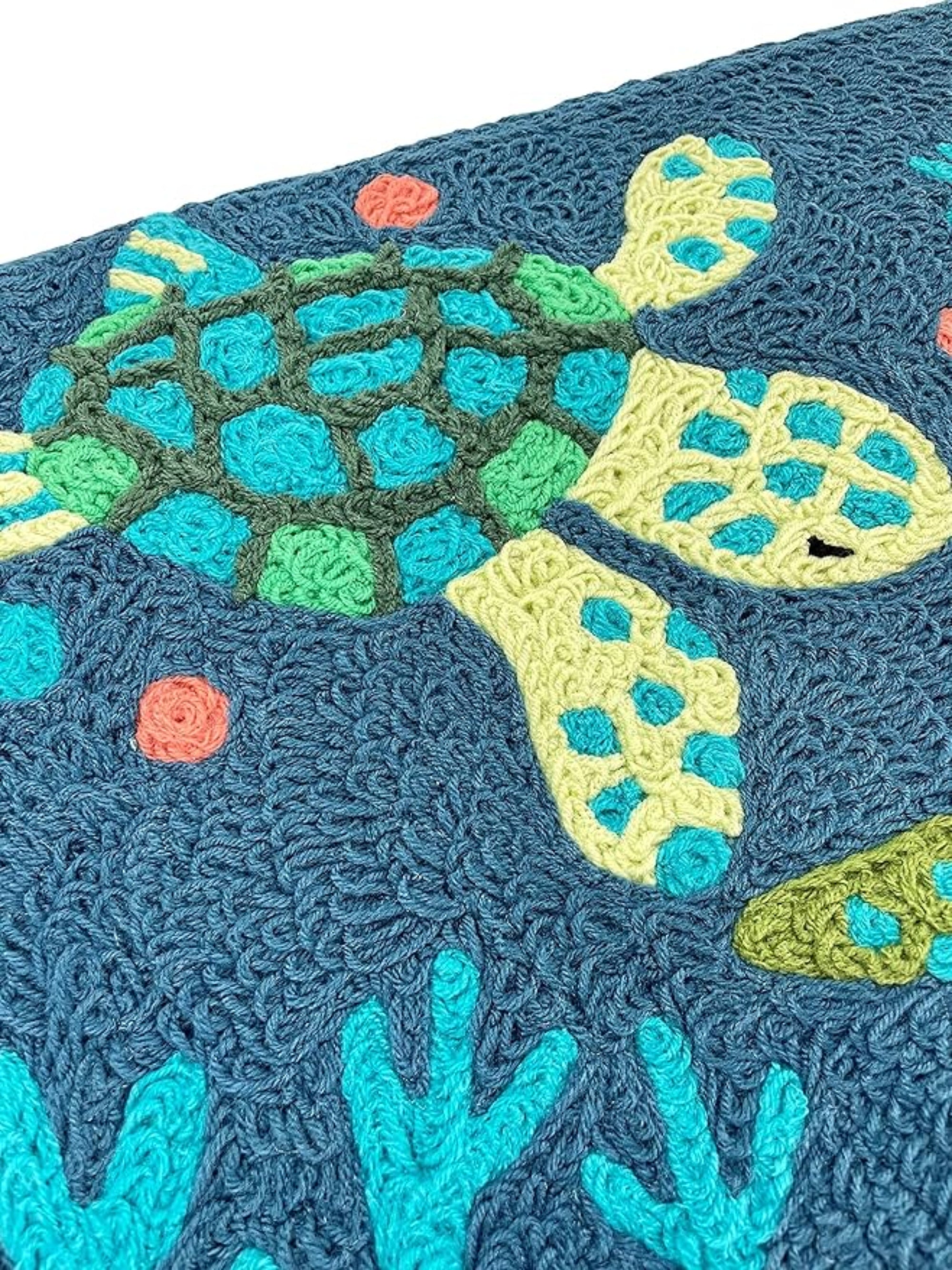 Jellybean Deep Blue Sea Turtles Rug – Ocean-Inspired Indoor & Outdoor Accent Rug, Durable & Machine Washable, 20" x 30"