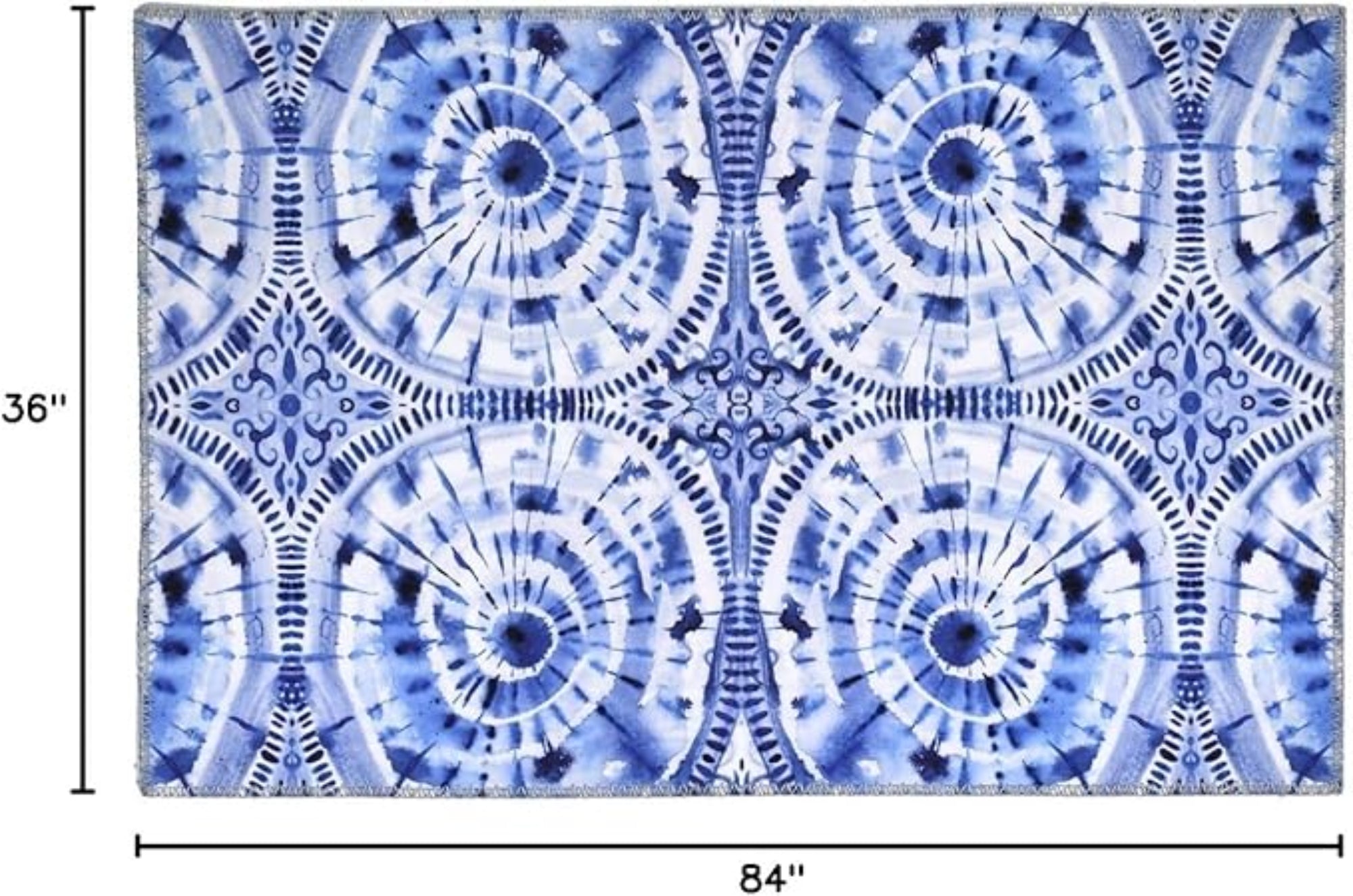 Jellybean Shibori Blue Indoor Rug – Stylish, Soft, Durable, and Easy to Clean Accent Rug for Living Rooms, Bedrooms, or Entryways