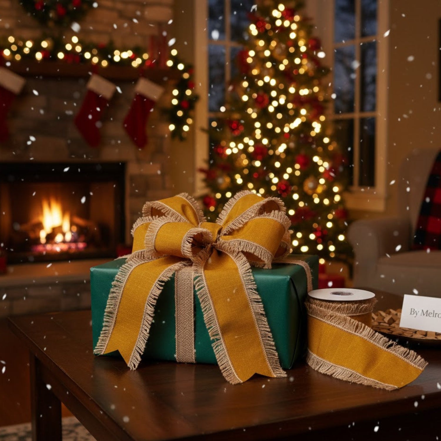 SKU - MEL-91703DSWired Jute Fringe Ribbon – 2-Pack Rustic Holiday Decor 4W x 5YD Brand Name By Melrose