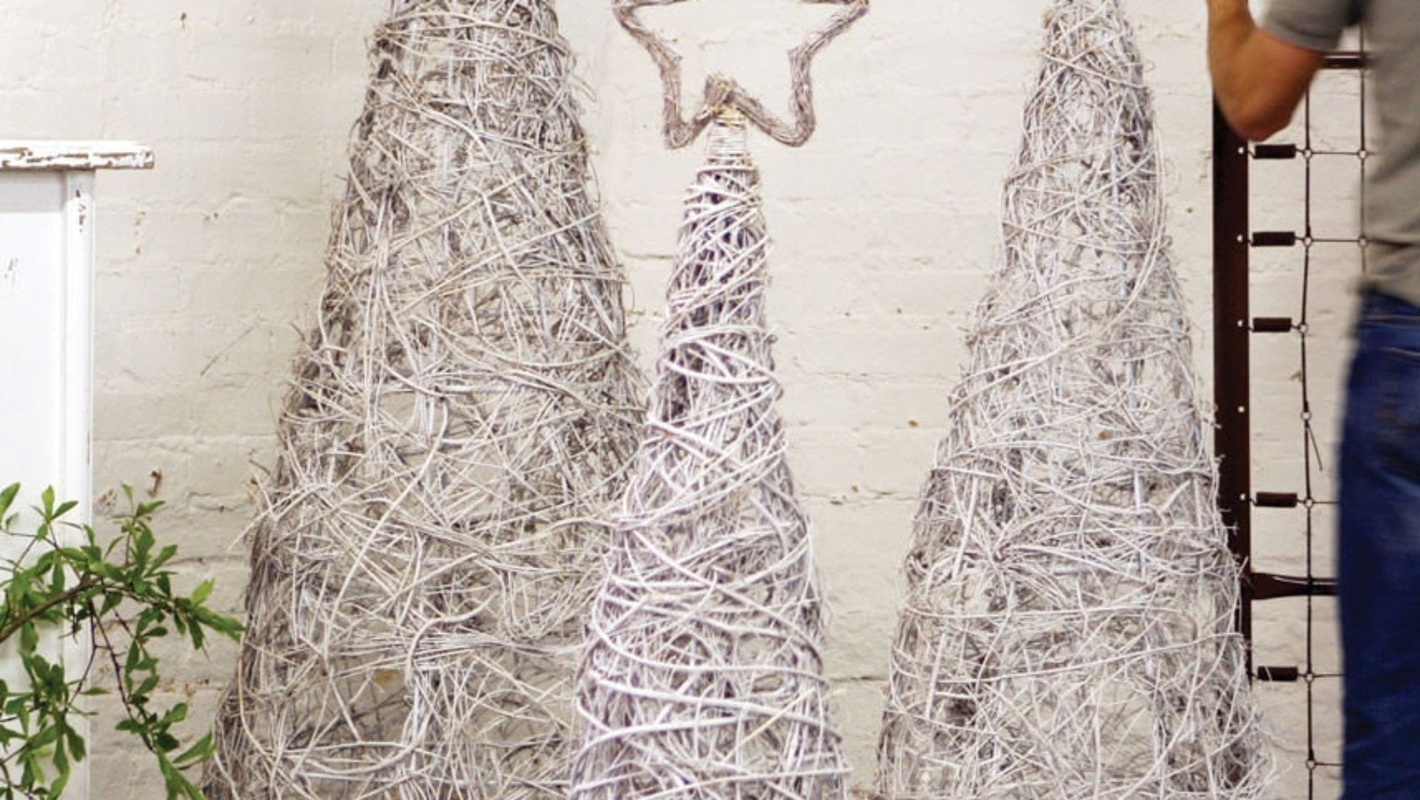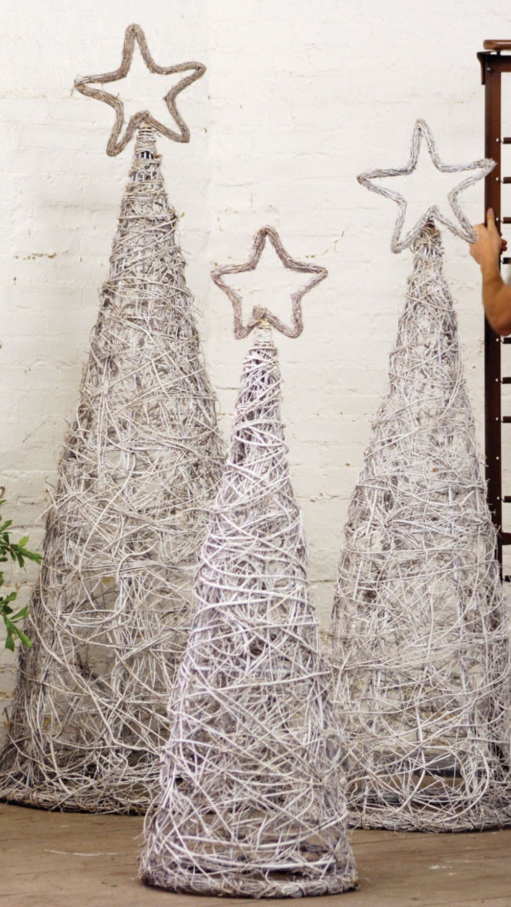 Whitewash Twig Topiary Trees with Star Finials – Indoor Holiday Decorative Set of 3 – 85"Tall by Kalaou