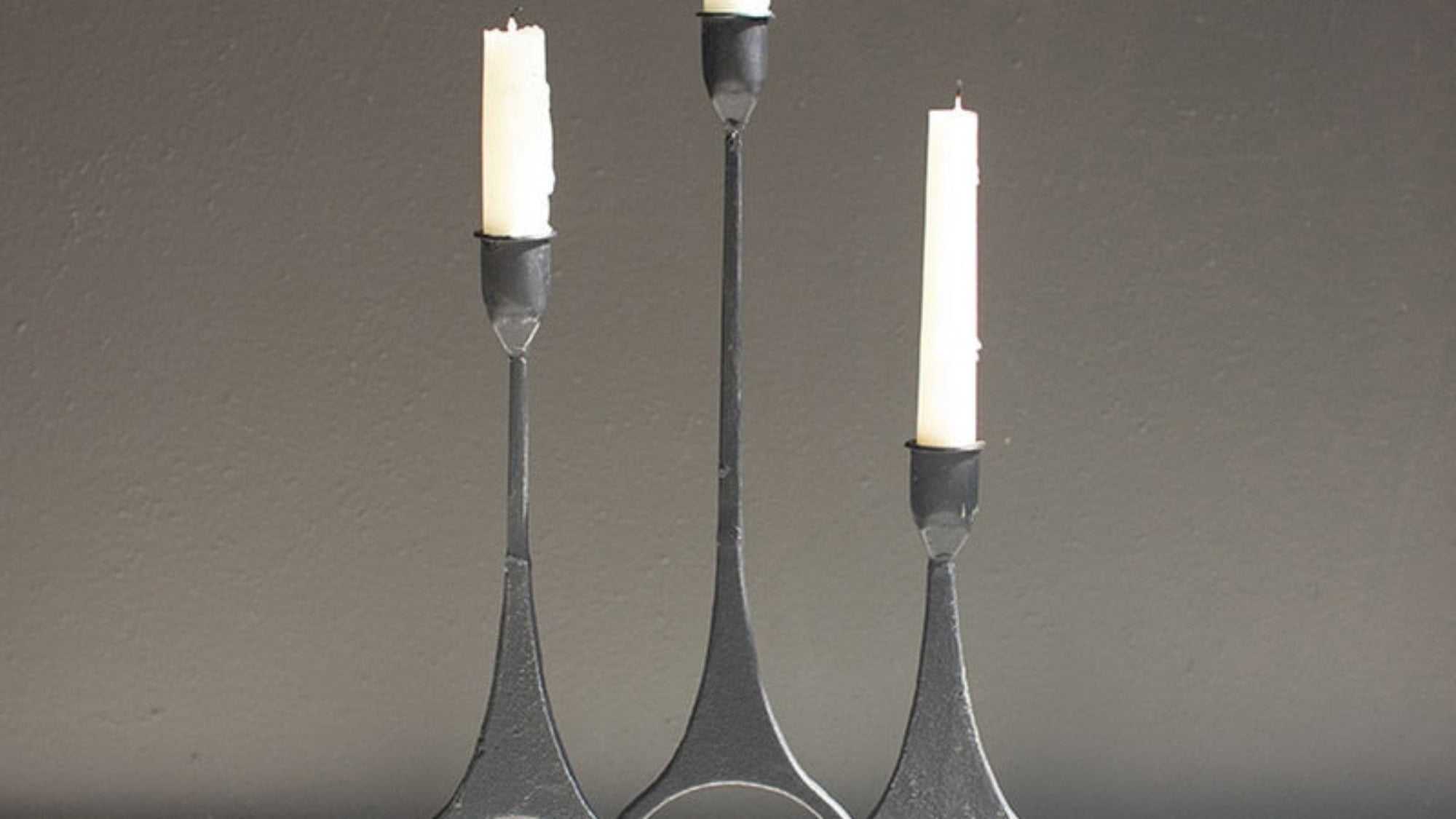 SKU - KAL-CBL1030- Includes three forged cast iron taper candle holders