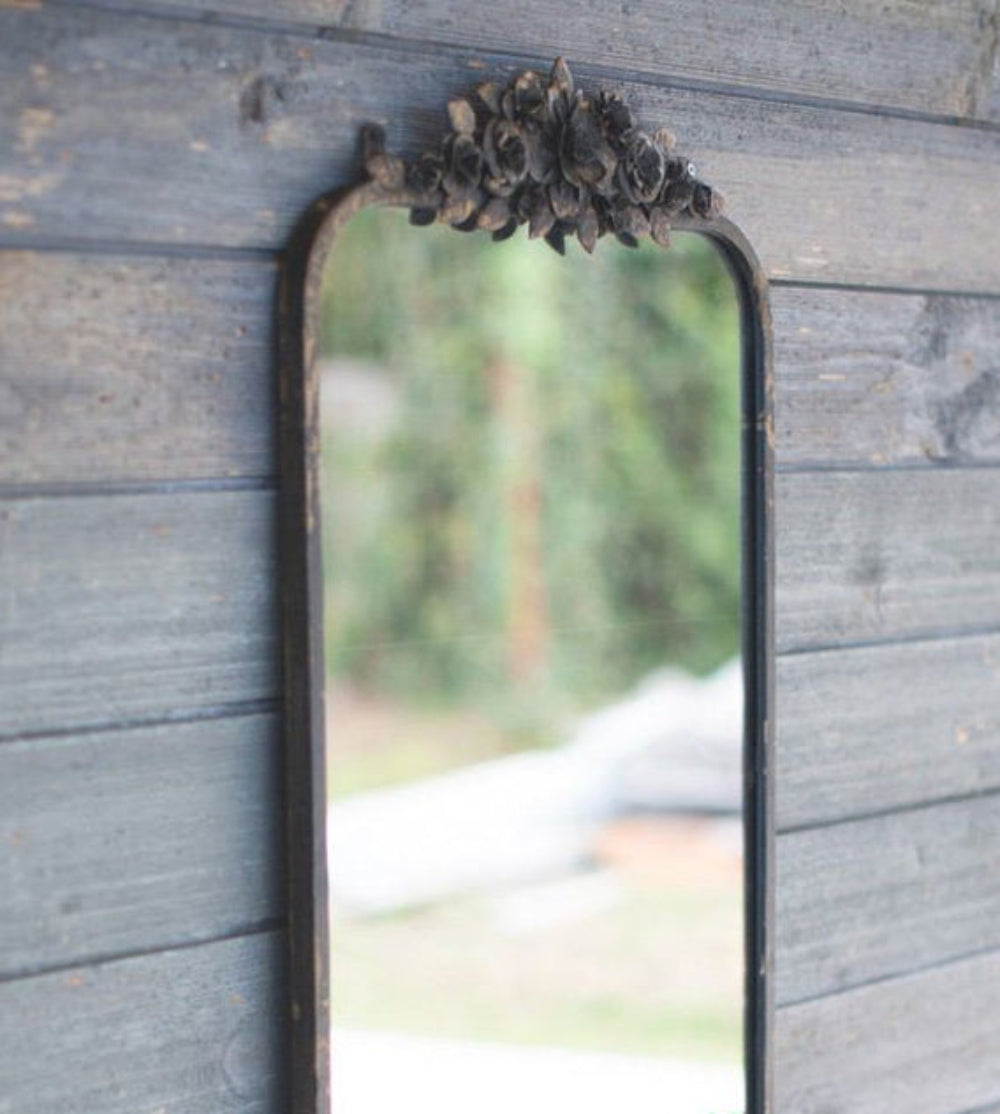 Rectangle Metal Mirror with Flower Details 32"H – Gray Farmhouse Wall Mirror by Kalalou
