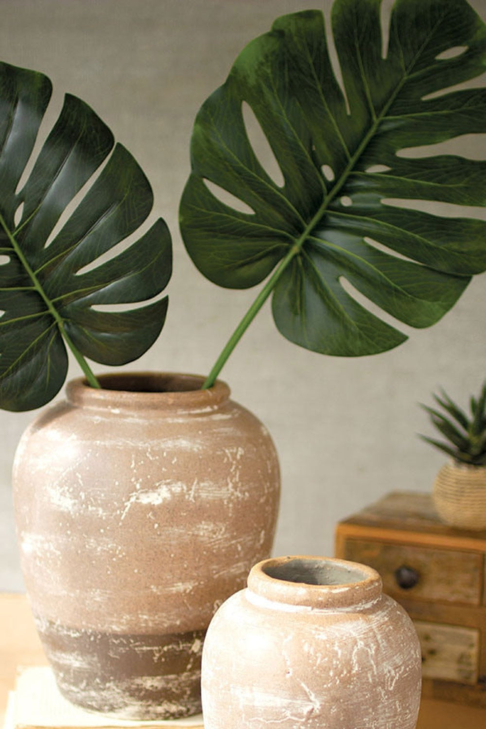 Add a touch of natural sophistication to your décor with Kalalou’s Set of Two Ceramic Two-Toned Urns. Designed with a rustic tan base and white-washed upper half, these urns bring warmth, texture, and balance to any tabletop or console display. Their handcrafted ceramic finish creates an artisanal charm, making them ideal for displaying dried botanicals or as standalone statement pieces in any traditional or modern home.