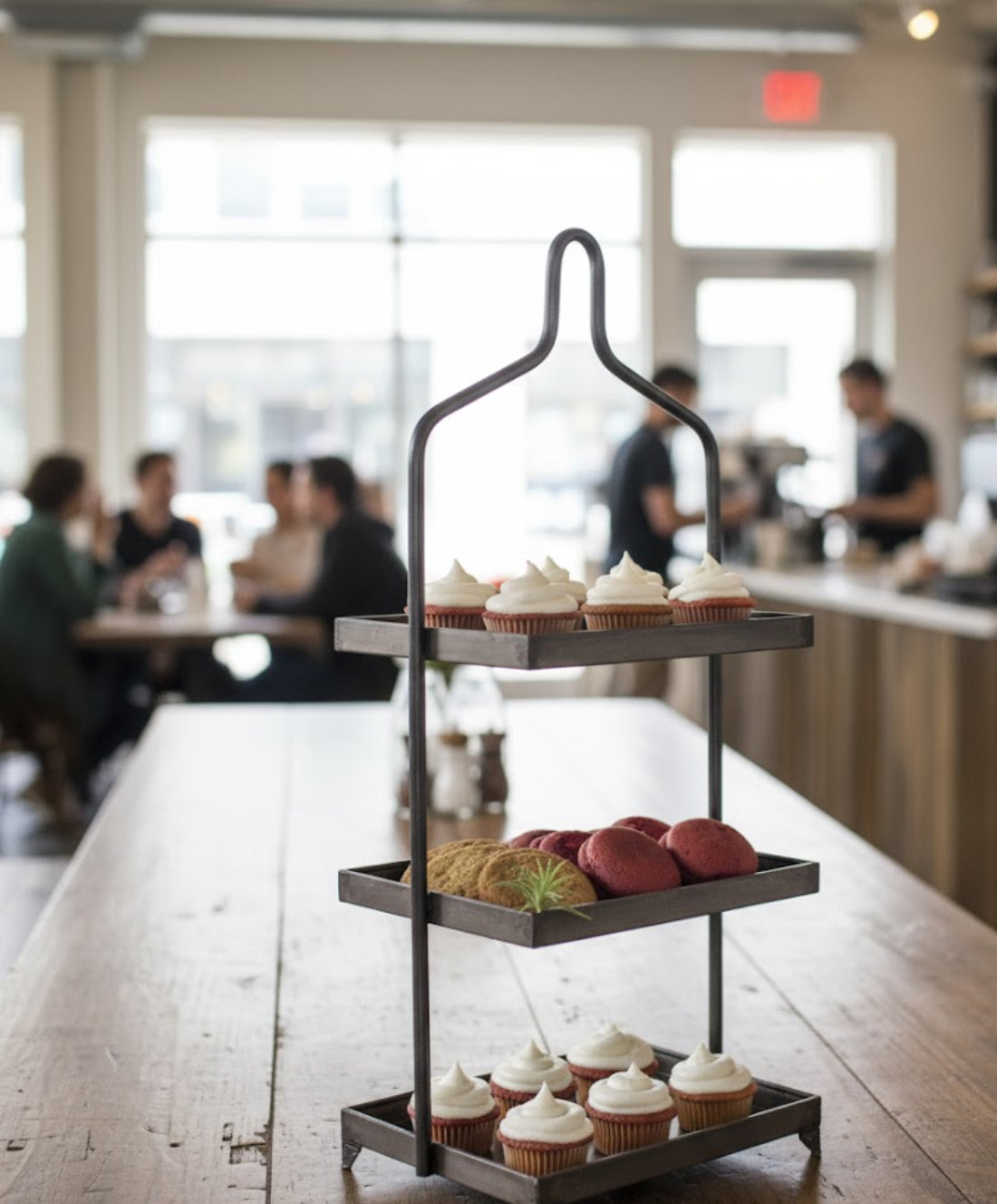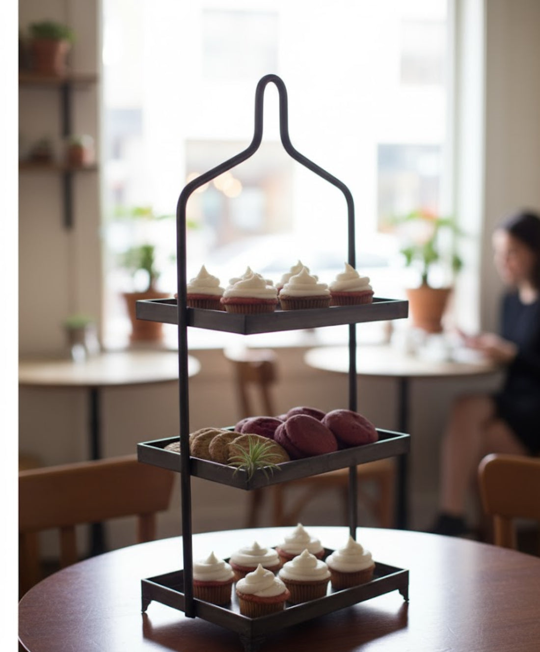 Showcase your favorite items with this Three-Tiered Metal Display, measuring 12x10x32 inches. Designed in a raw gunmetal finish, it offers an understated yet timeless appeal that fits seamlessly into any decor. With three spacious tiers, this display is perfect for organizing and presenting items in your kitchen, dining room, or office. Its sturdy metal construction ensures durability, while the sleek gray finish complements both rustic and modern settings. Though not food safe, it serves beautifully for decorative accents, plants, or supplies. Bring function and style together with this versatile three-tier metal display stand.