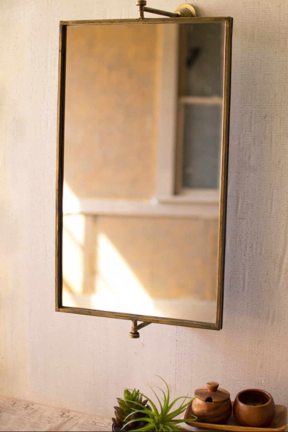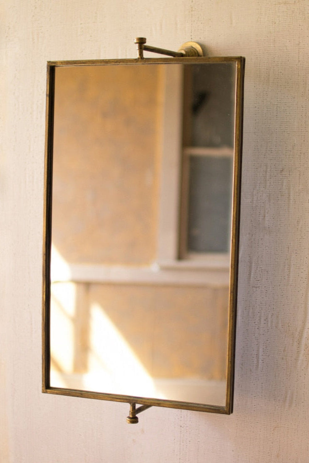 Wall Mirror, Rotating Rectangular Wall Mirror 14"H - Antique Brass Finish By Kalalou