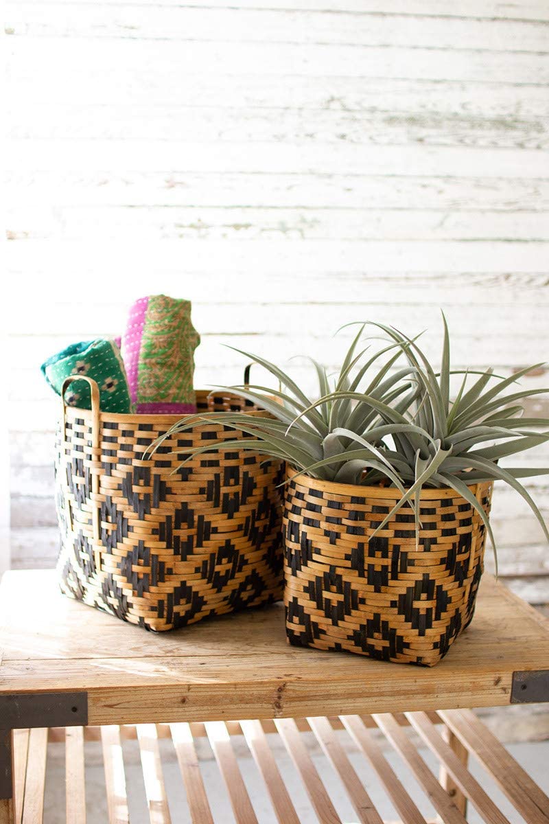 Kalalou CMN1450 Set Of Two Natural And Black Split Bamboo Baskets
