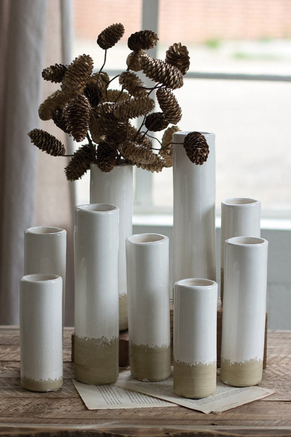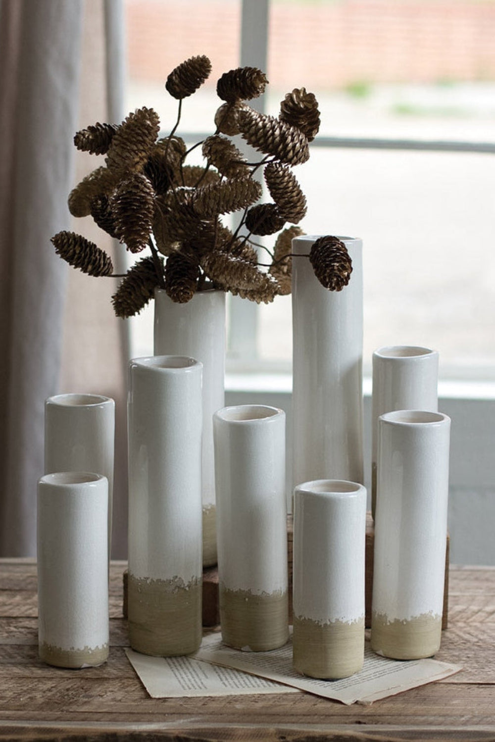 White Ceramic Cylinder Bud Vases – Glazed Decorative Display, Set of Nine by Kalalou