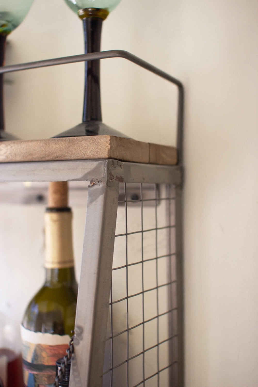 Wall Bar with Fold Down Shelf 17.5"H, Industrial Wood and Metal Hanging Cabinet by Kalalou
