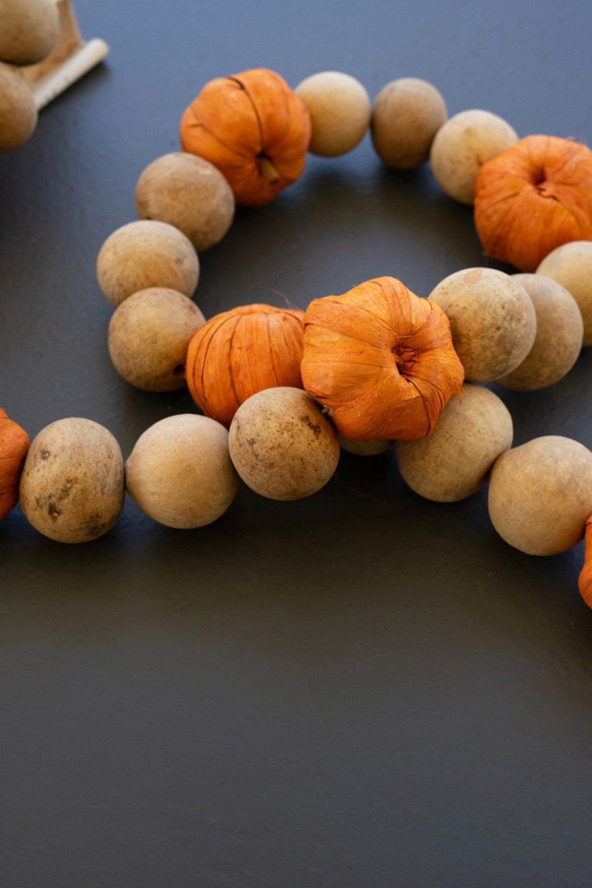 Each piece is made with a blend of gourd, paper, jute, and corn husks, giving the garland rich texture and a handcrafted character. The multi‑material construction delivers earthy tones with bursts of orange from the pumpkins, perfect for complementing wood, stone, or neutral decor schemes. To keep it looking fresh, simply wipe clean with a lint‑free, dry cloth — this strand is built to last through many falls to come.