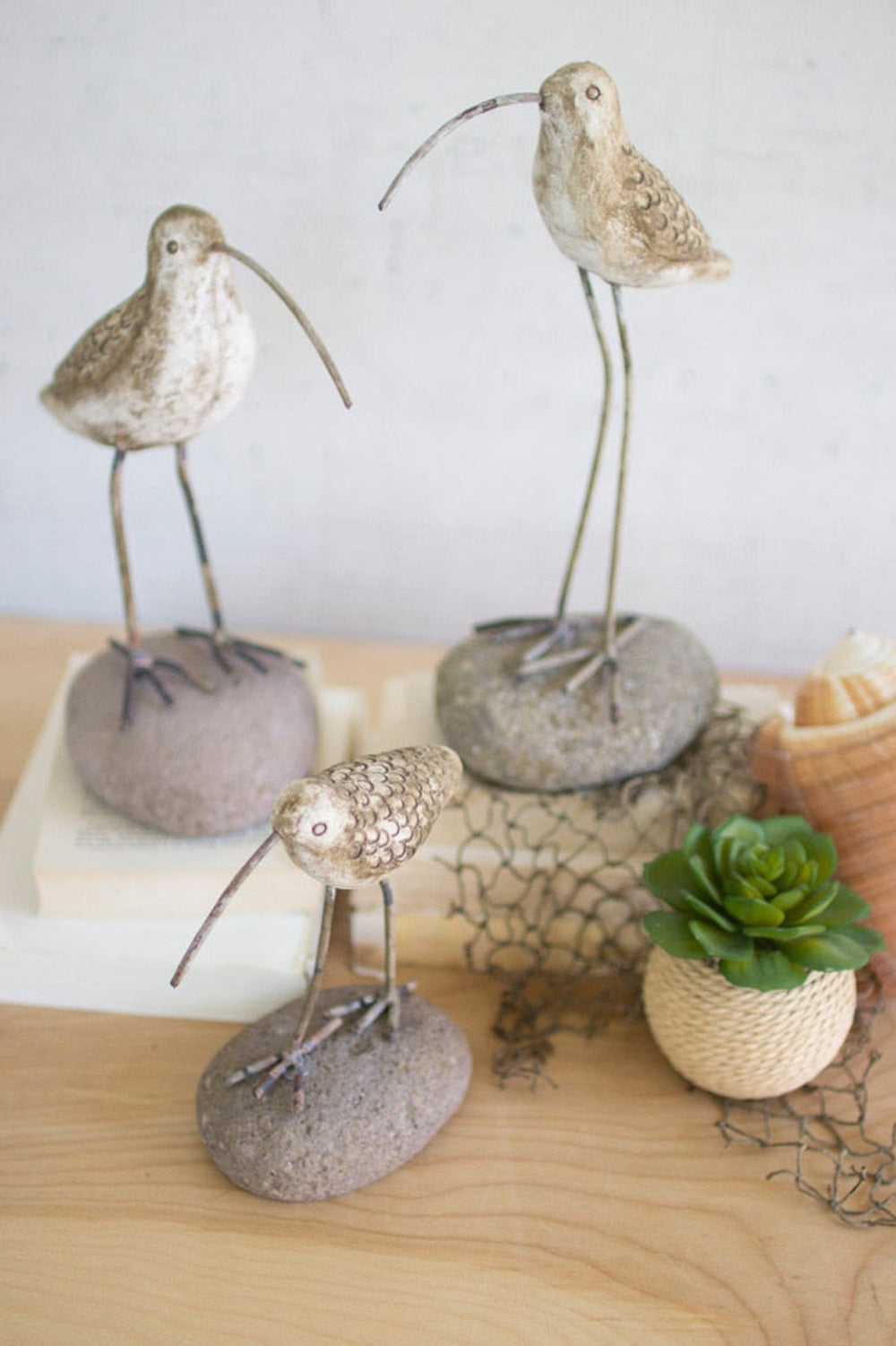 SKU - KAL-H3668Painted Clay Shore Birds on Rock Bases – Handmade Coastal Decor, Set of Three