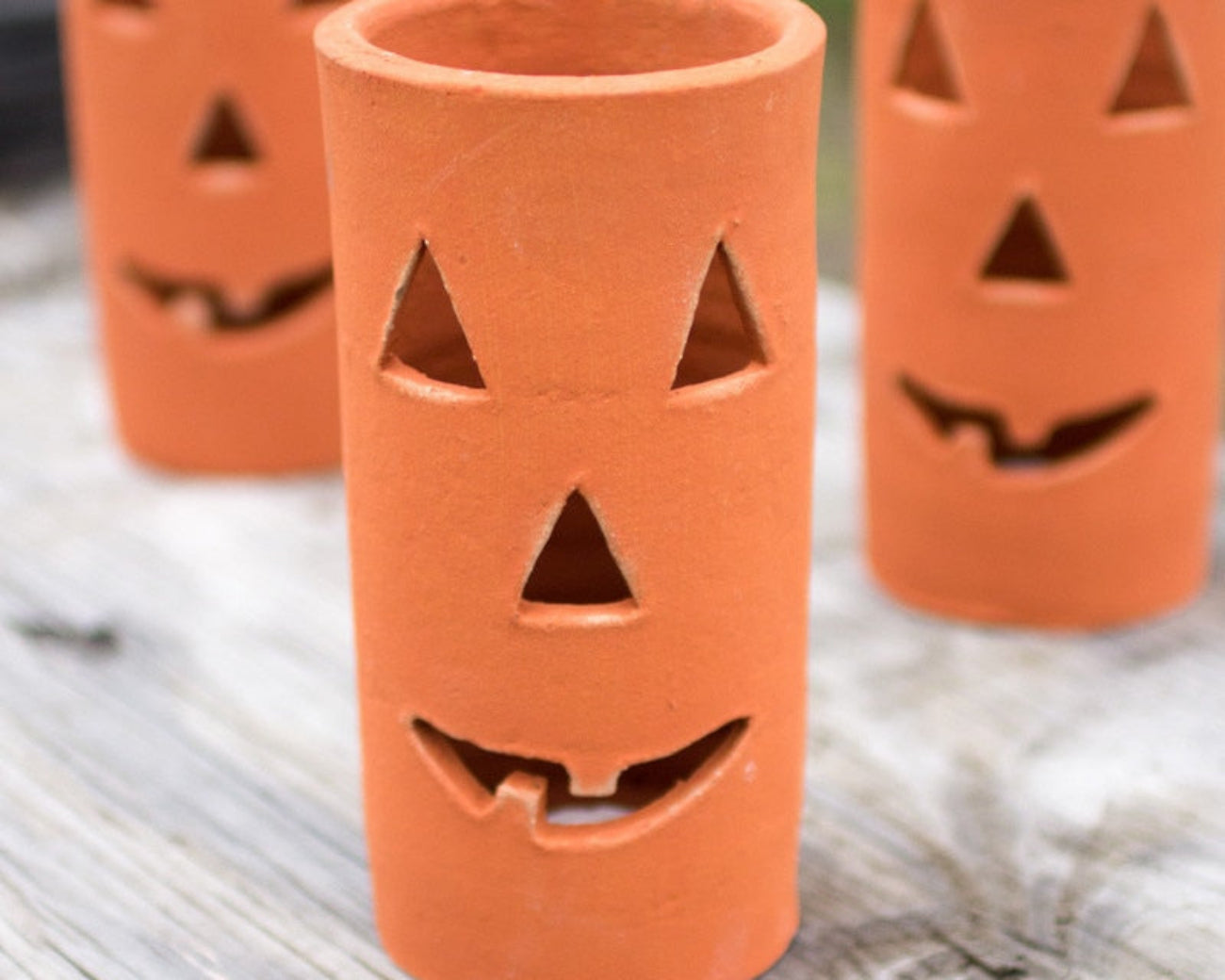 Tall Terracotta Jack-O-Lanterns – 8 Inch Tall Handmade Halloween Decor, Set of 6 By Kalalou