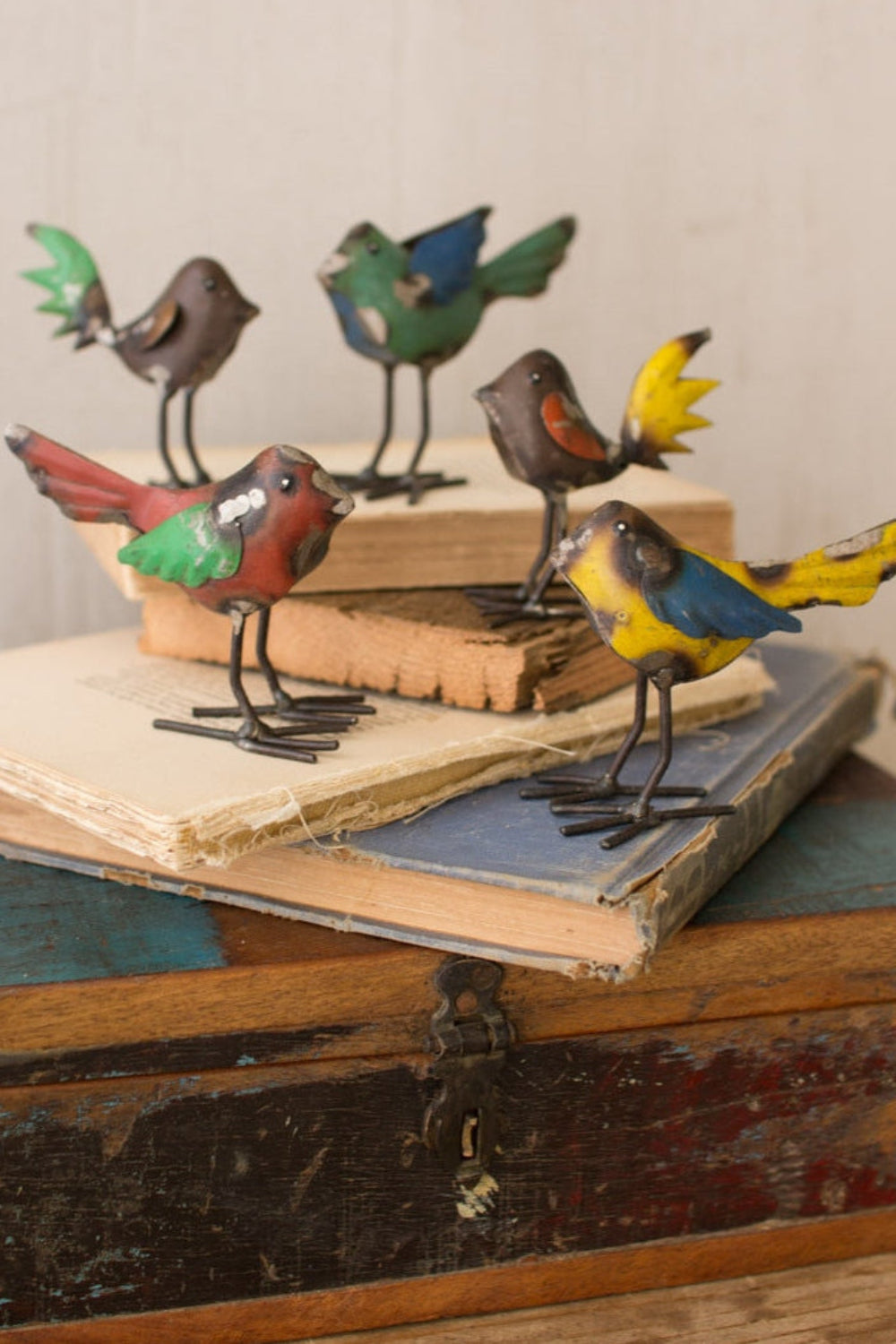 - Set of 5 handcrafted recycled metal bird sculptures