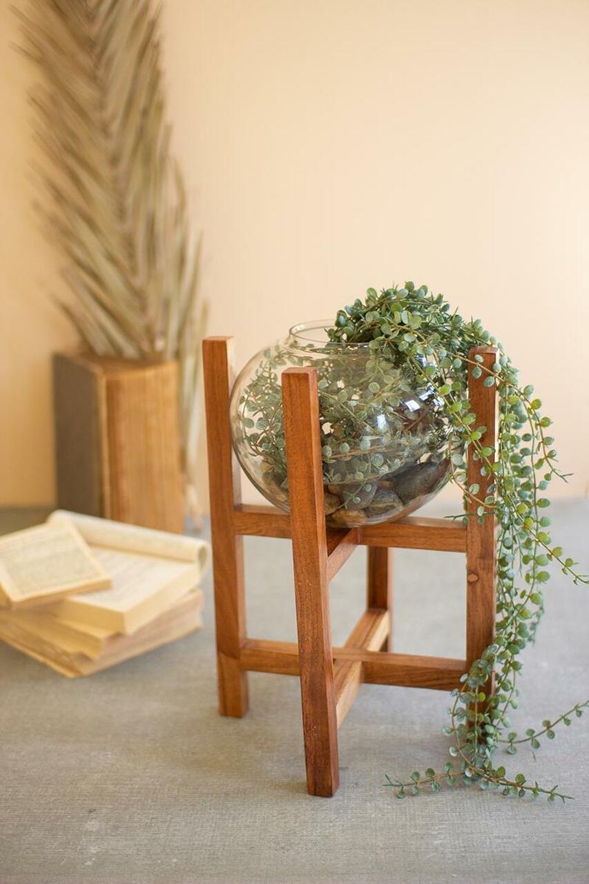 Kalalou NSS1126 Round Glass Lantern on a Wooden Base