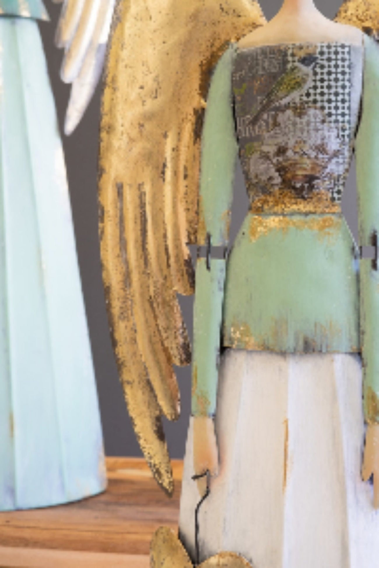 Set of Two Painted Metal Christmas Angels – Holiday Decor