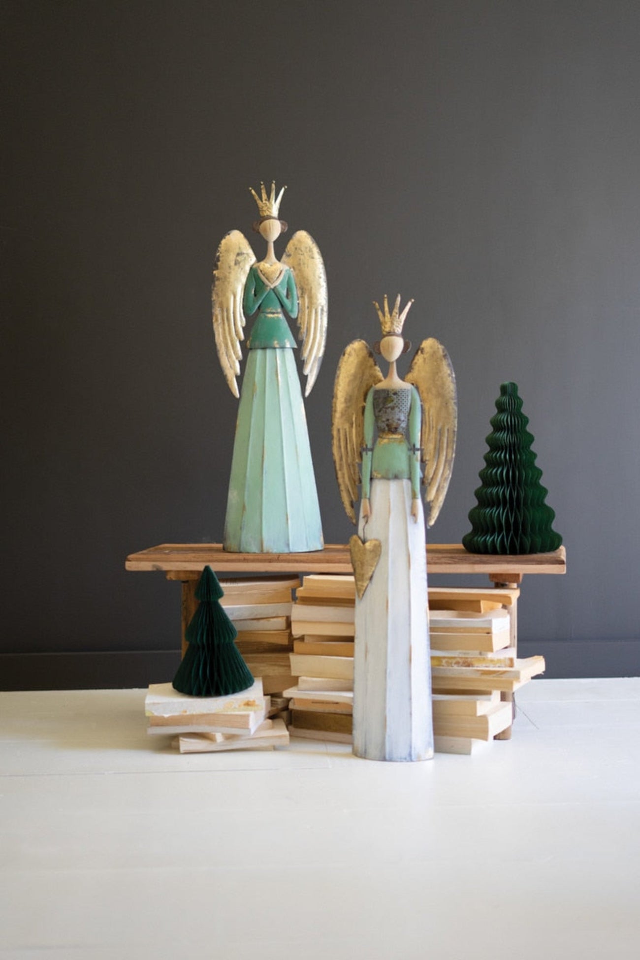 Kalalou Set of Two Painted Metal Christmas Angels – Holiday Decor