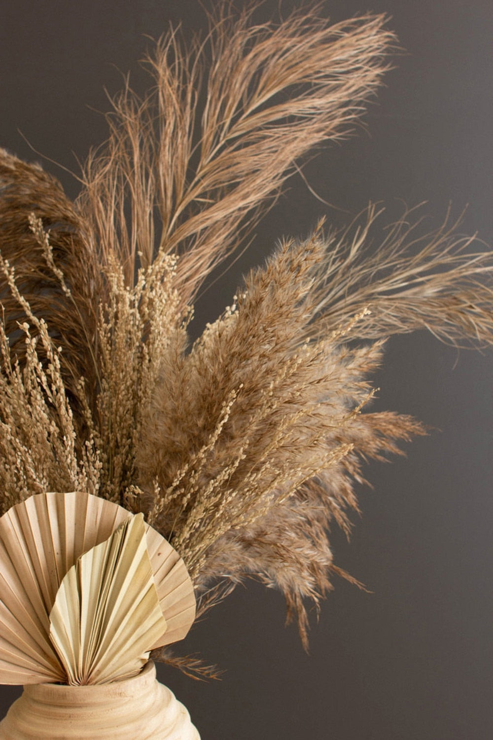 - Includes a large bundle of natural dried pampas grass