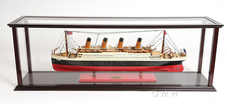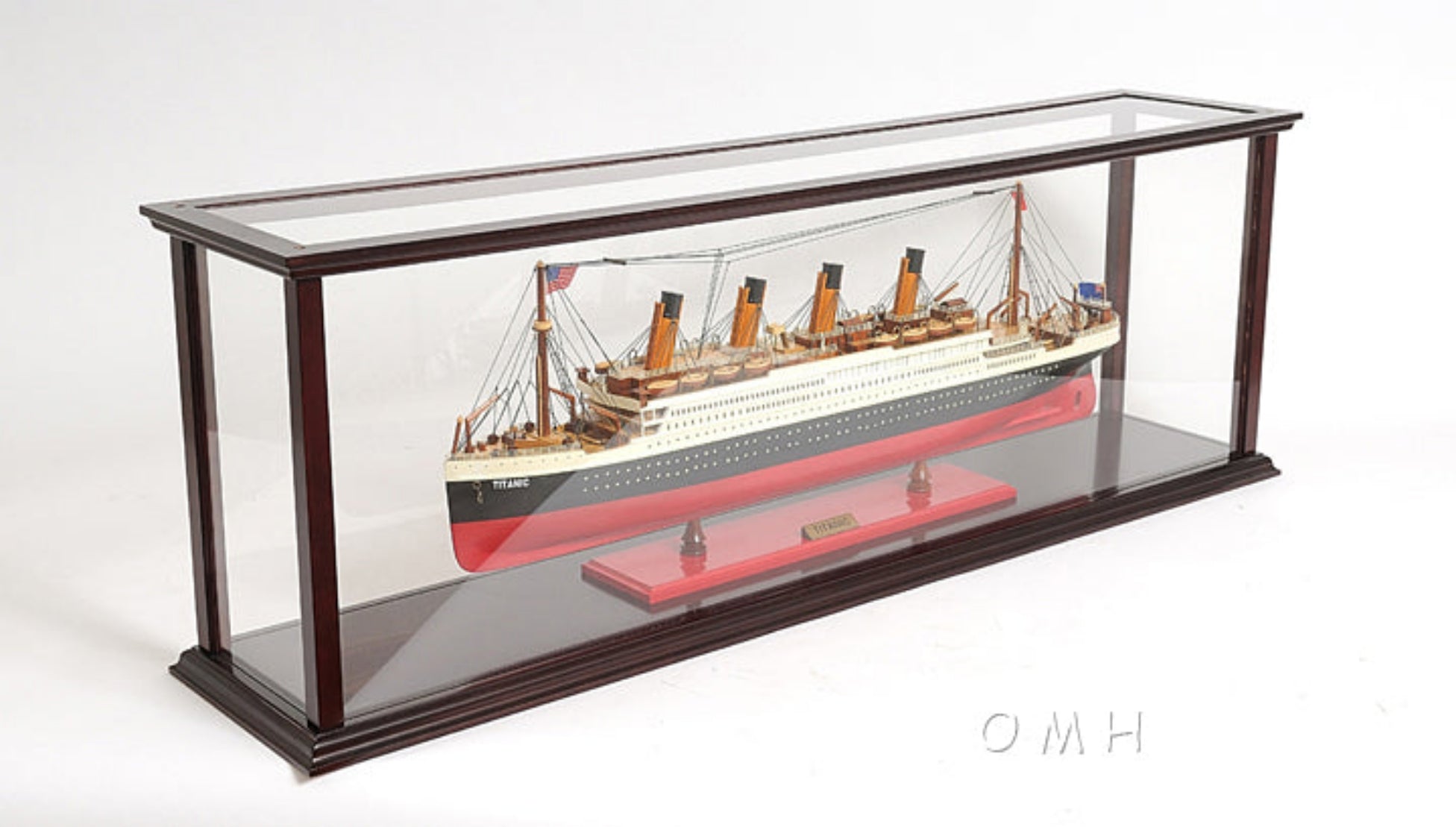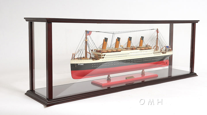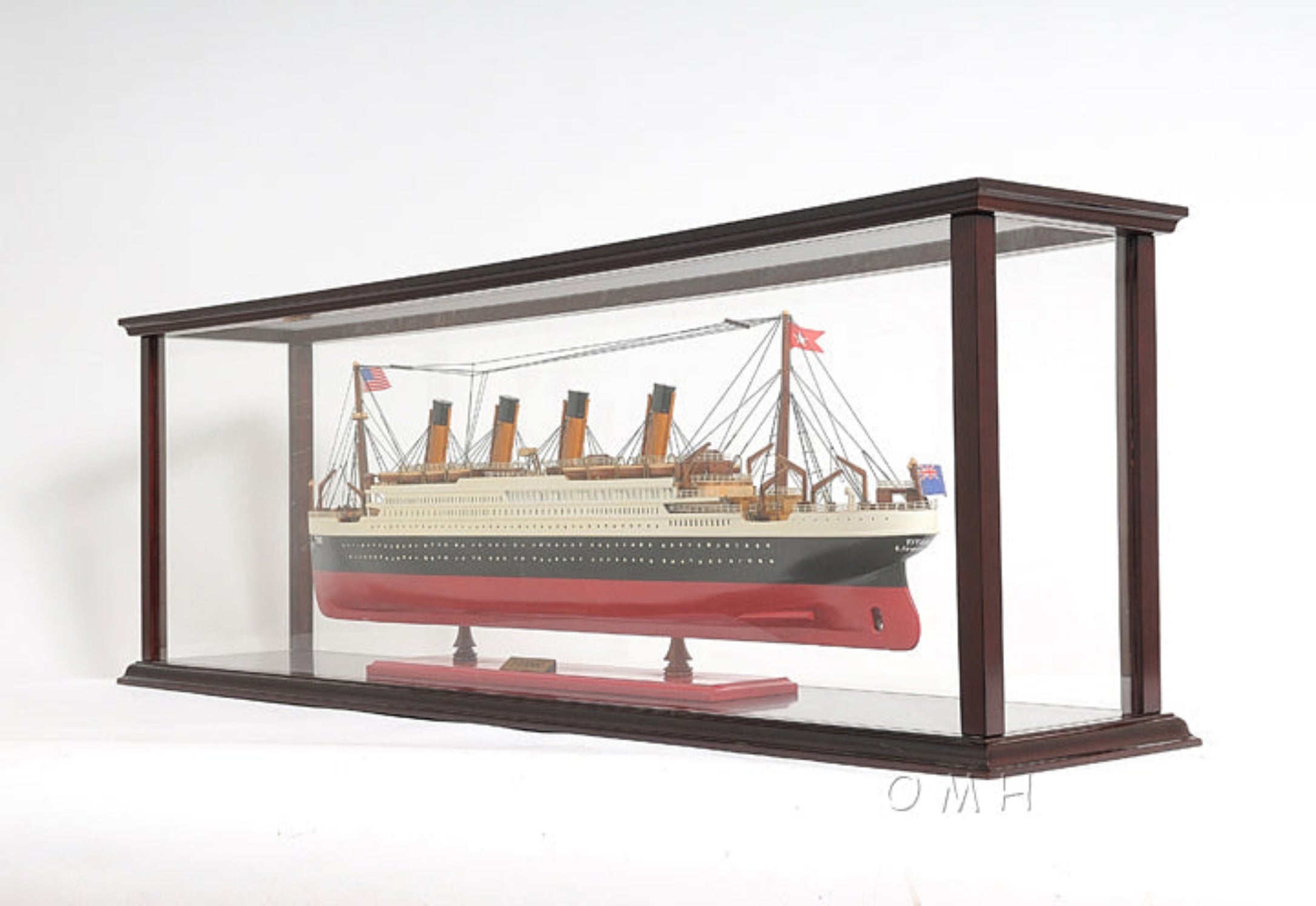 SKU - OMHP019Large Cruise Liner Display Case – Fits 40" Ship Models, Plexiglass Panels, Dark Mahogany Finish, 43" Interior