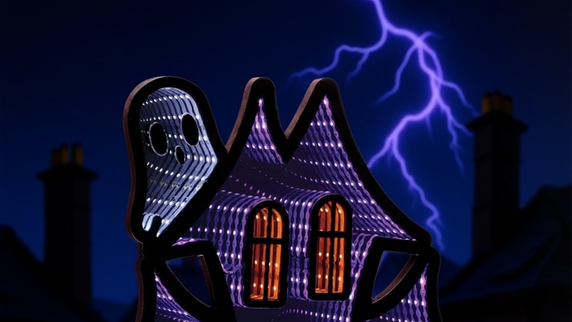 Set the perfect spooky scene this Halloween with the Haunted House w/Ghost Ekkolight. Crafted from durable acrylic, PET plastic, and foam, this LED decorative light features a detailed haunted house with a floating ghost for a fun yet eerie ambiance. Measuring 10.5"L x 2"W x 16"H, it fits perfectly on mantels, tabletops, or as part of your Halloween centerpiece. Ideal for indoor use, it adds a supernatural vibe to any festive setup, enhancing seasonal displays with soft LED illumination. Easy to place and energy-efficient, this whimsical yet spooky accent light creates a chillingly beautiful glow that captivates family and guests, making it a standout piece for Halloween decor.