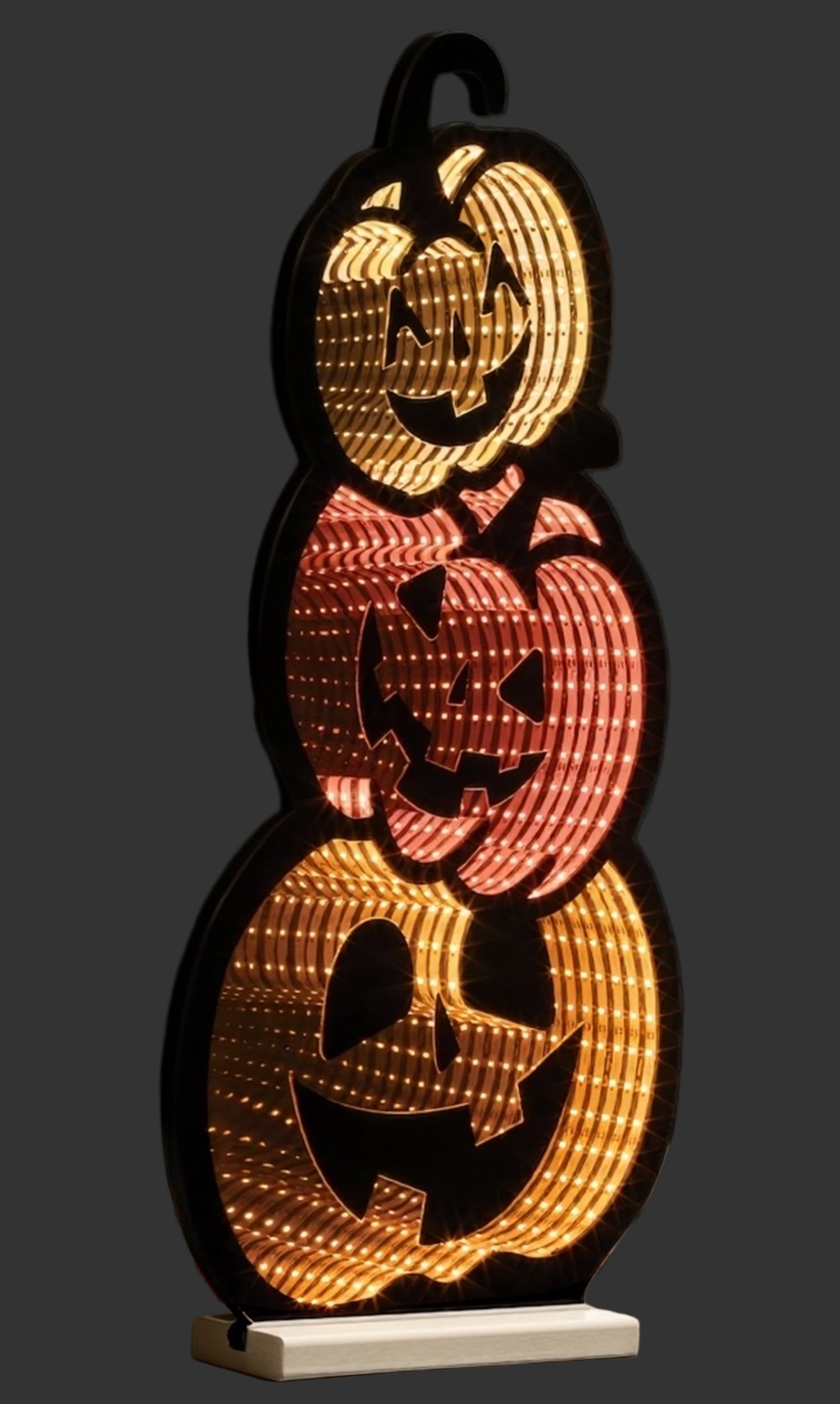 - Triple stacked Jack-o-Lantern design for festive Halloween displays