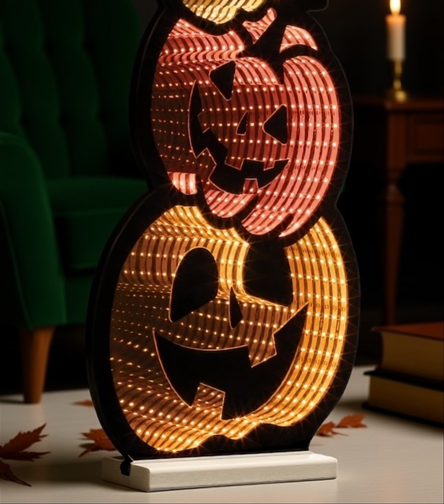 - Creates playful, spooky ambiance indoors