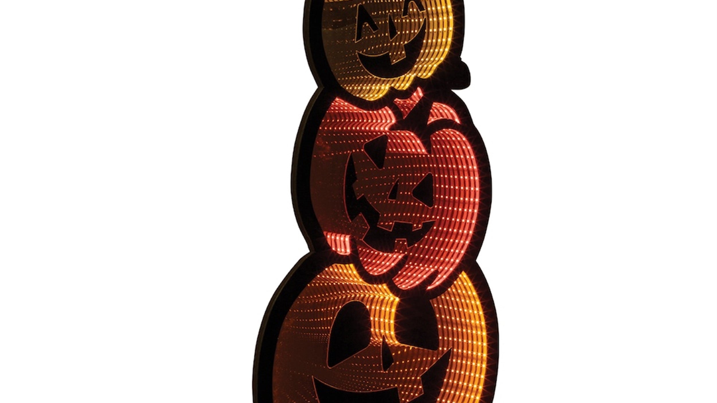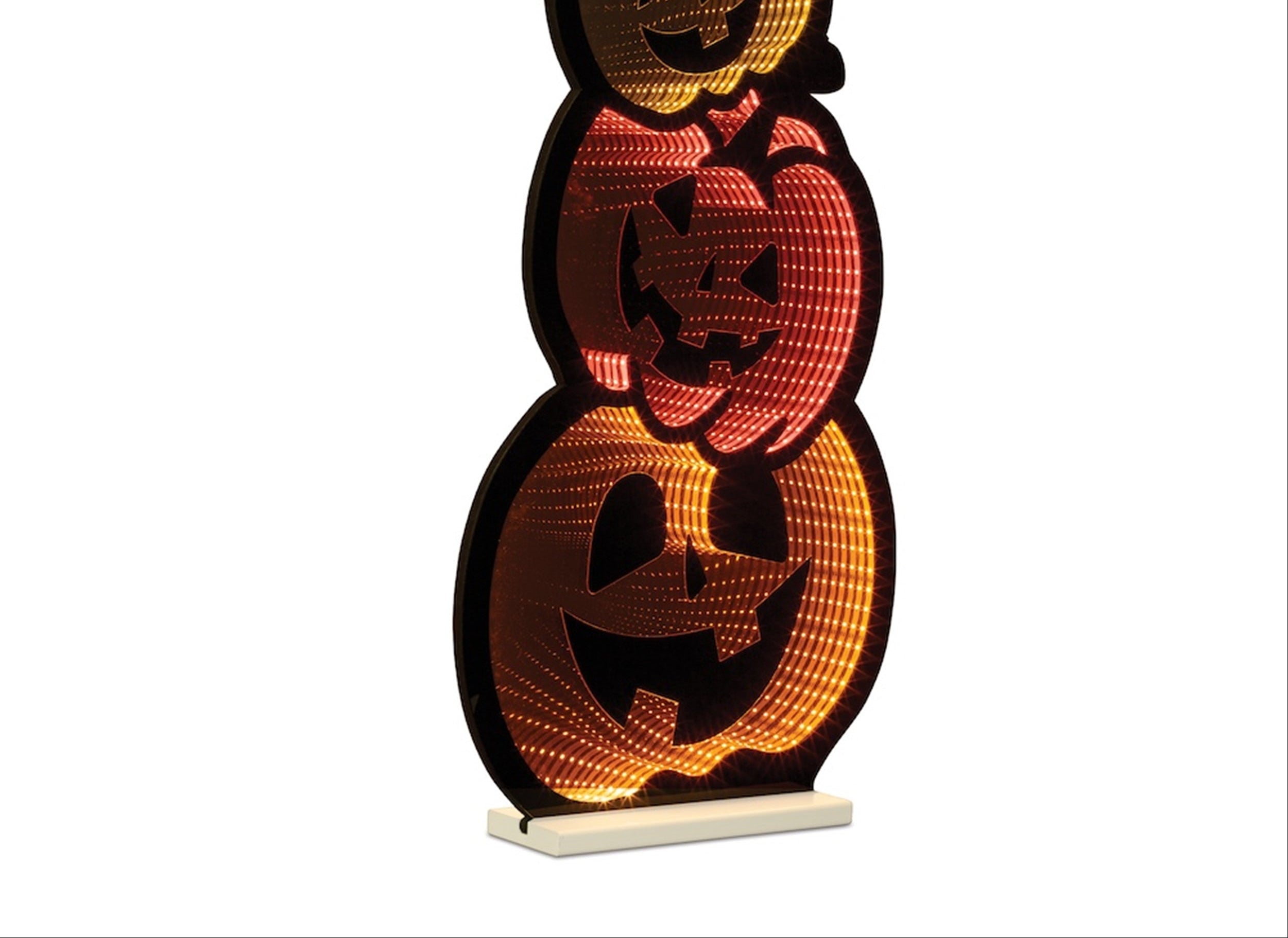 Make a bold Halloween statement with the Triple Jack-o-Lantern Ekkolight. This 35.5-inch tall display features three stacked pumpkins crafted from durable acrylic, PET plastic, and foam. Built-in LED lights provide a bright and festive glow, creating a spooky yet playful ambiance for your seasonal decor. Ideal for entryways, porches, or living rooms, this large-scale Halloween accent serves as a centerpiece for indoor or covered outdoor displays. Measuring 17.5 inches long by 1.75 inches wide by 35.5 inches high, it is lightweight, easy to place, and adds instant holiday charm. UL plug included for safe and convenient operation.