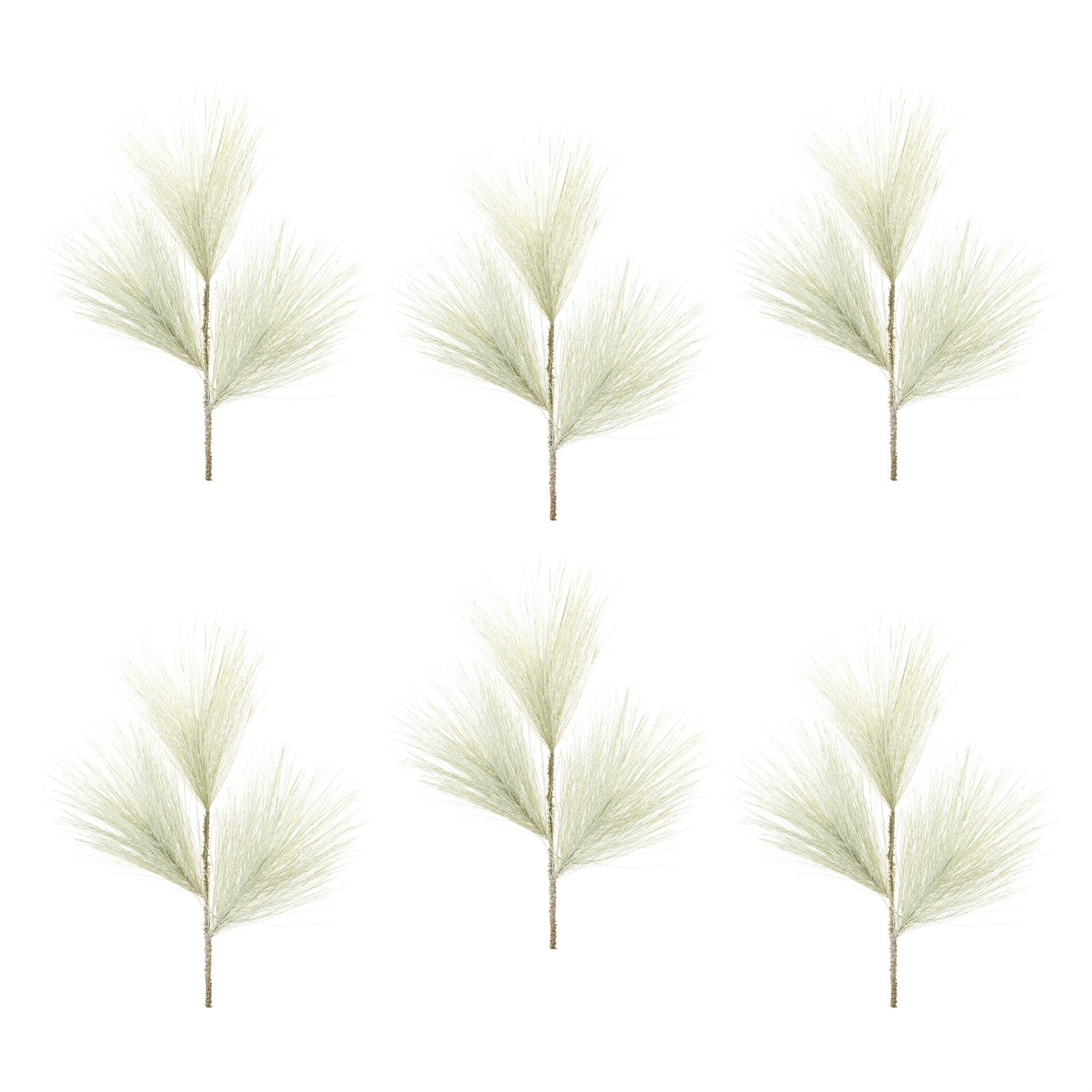 Artificial Long Needle Pine Spray Set of 6 - 29" H Glittered Indoor Holiday Greenery by Melrose