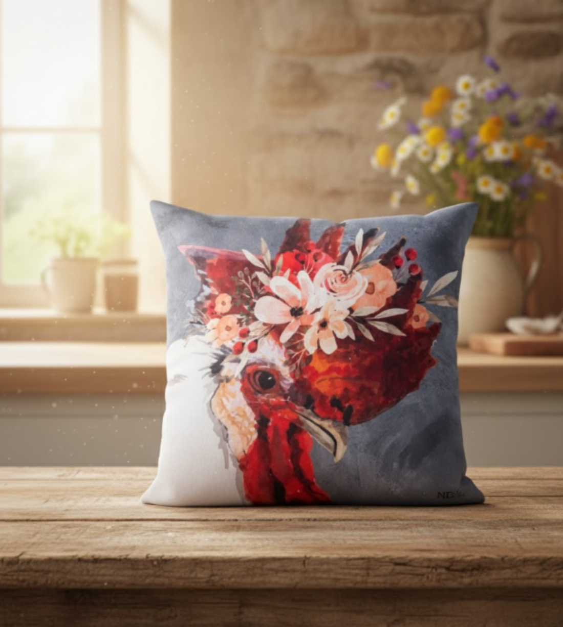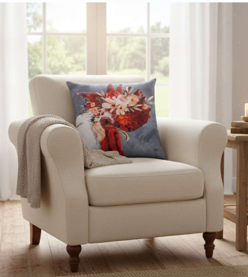 Cozy Farmhouse Rooster Pillow with Floral Accents