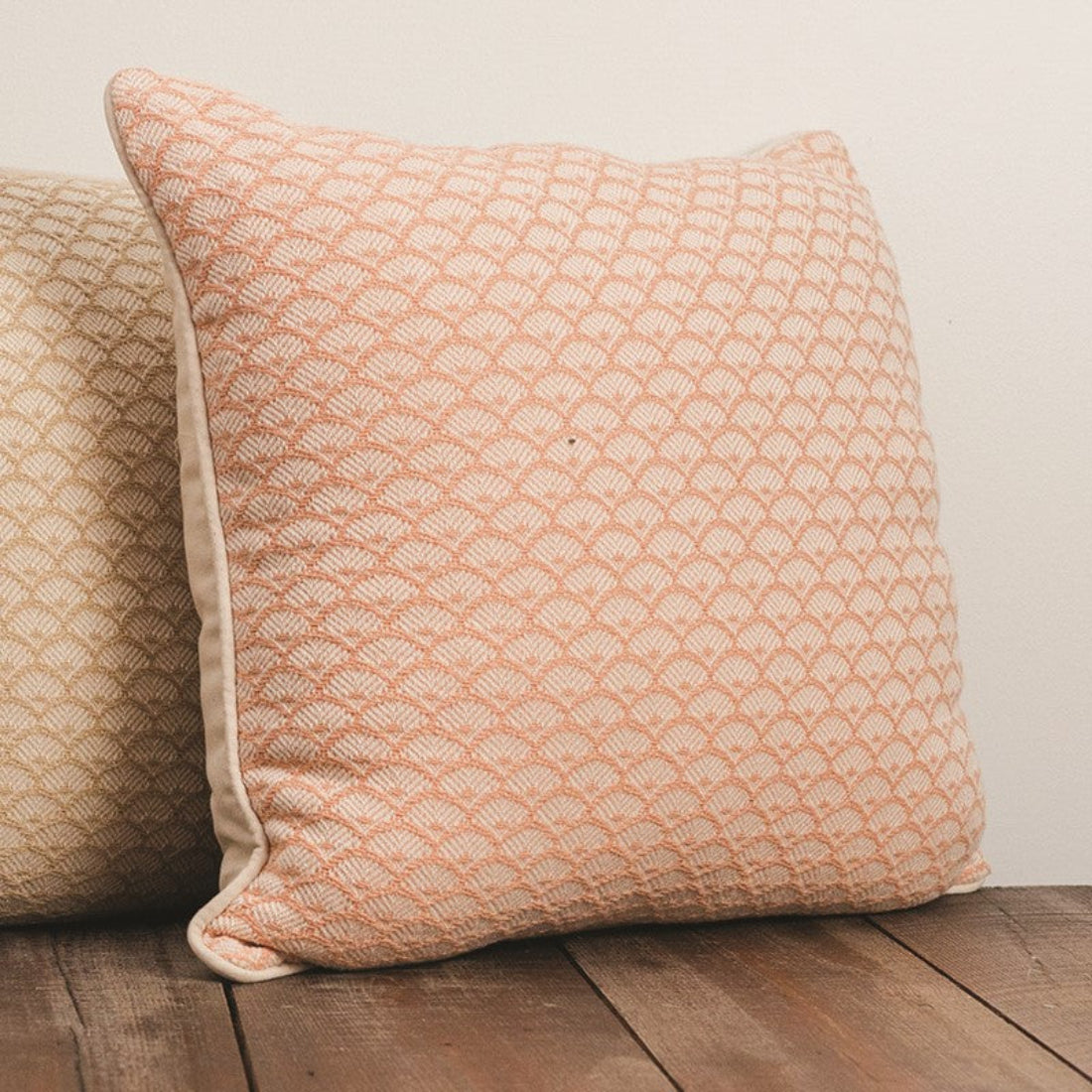 Manual Woodworkers 21x21 Beige Scalloped Cotton Pillow – Coastal Living Room Accent