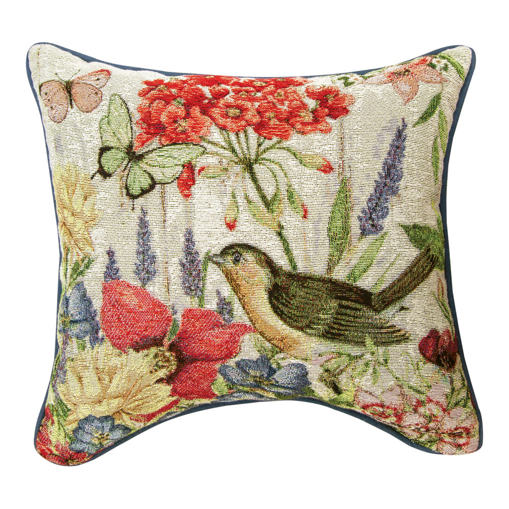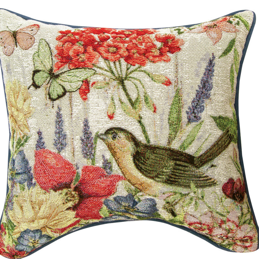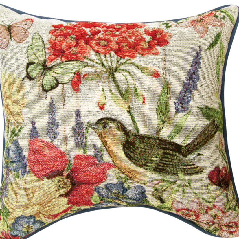 Manual Woodworkers and Weavers 17" Woven Pillow – Bloom with Grace Floral Tapestry Cushion for Elegant Home Accents