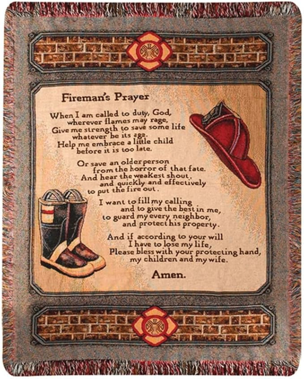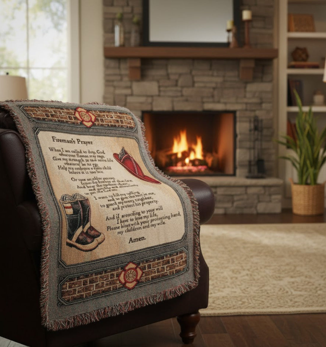- Design: Artisan-style tapestry with a striking “All Fired Up” motif