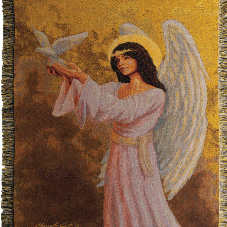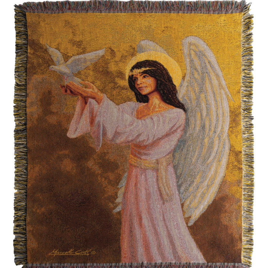 Manual Woodworkers and Weavers Angel with Dove Woven Throw Blanket, 50x60 Inches, Inspirational Cotton Tapestry for Comfort & Home Decor