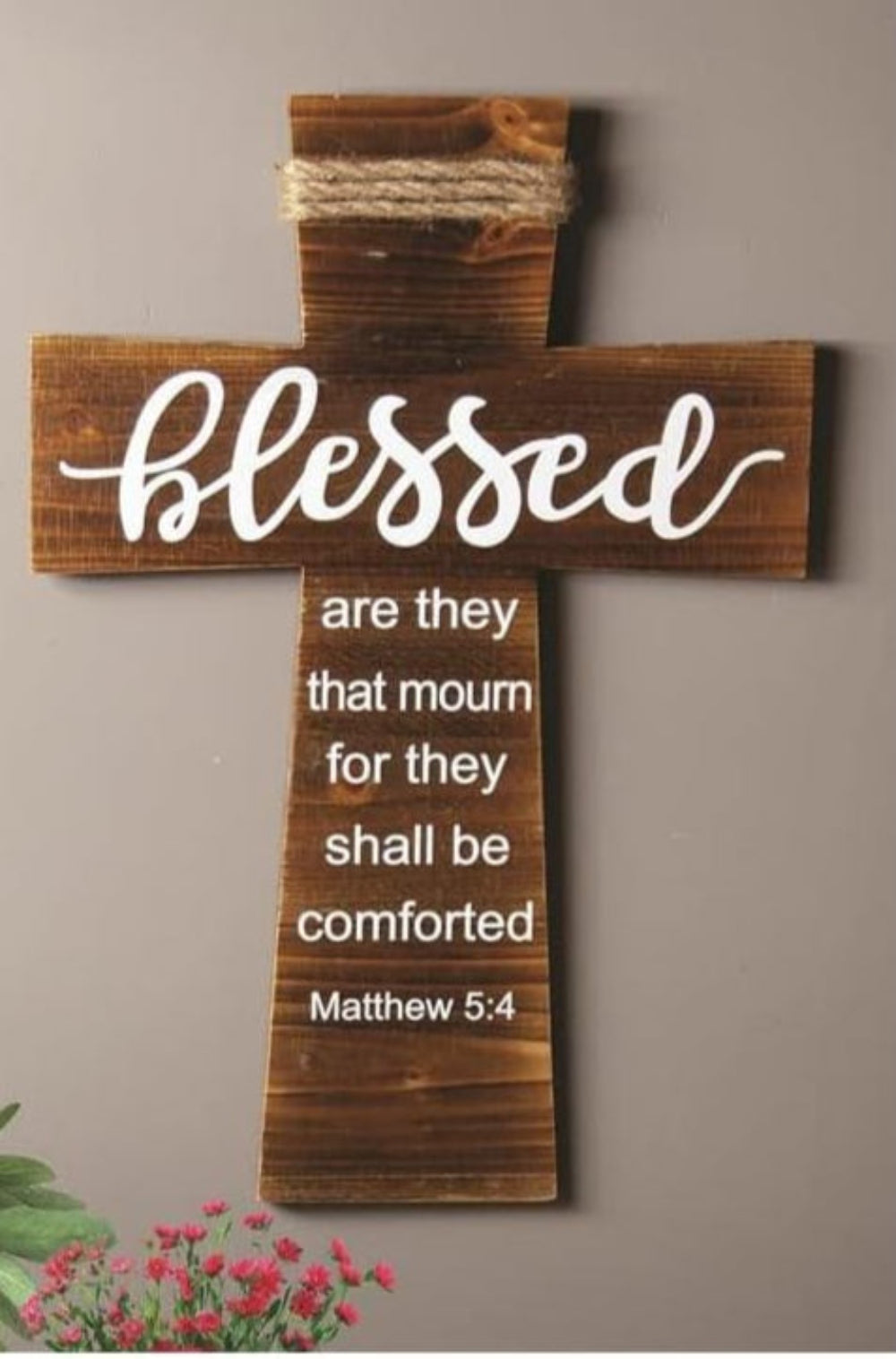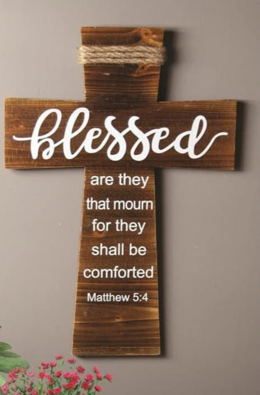 Blessed Are They That Mourn Wall Cross – Wooden Memorial Decor, 20" H x 14" W