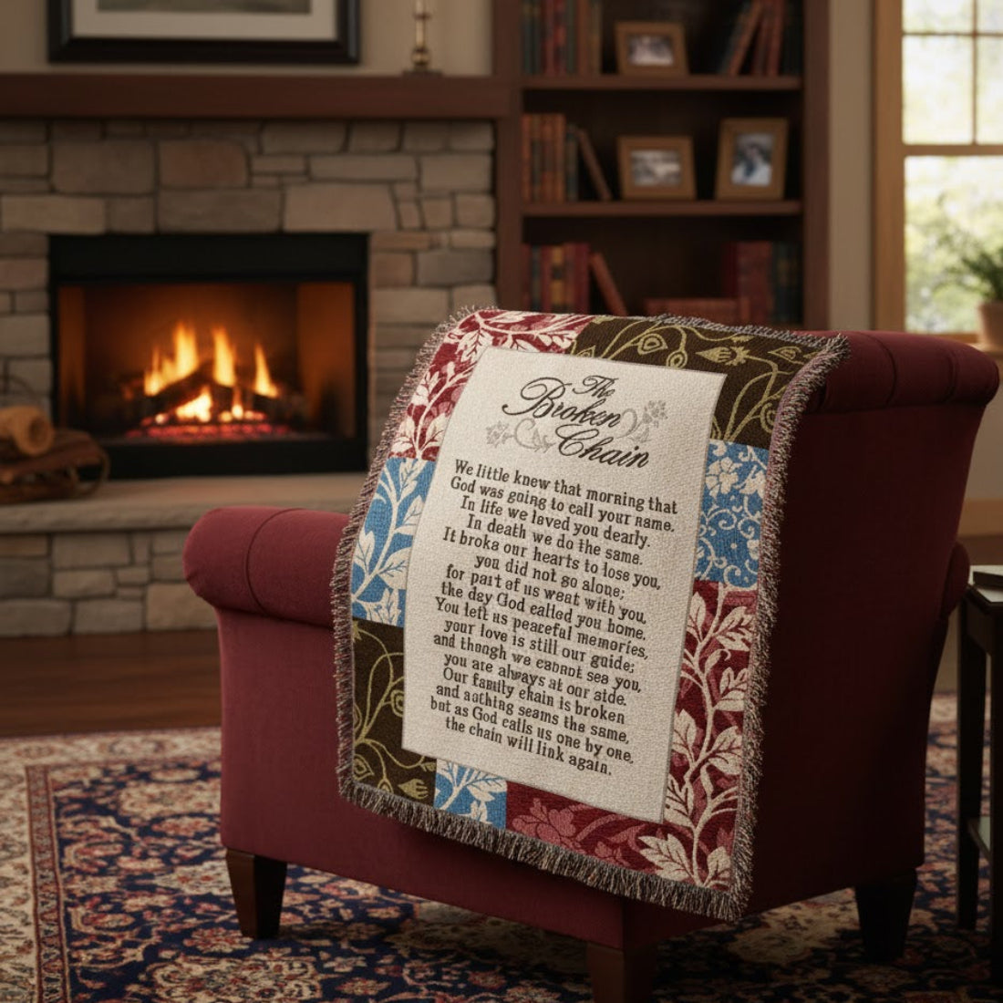 Broken Chain Poem Throw – 50x60 Cotton Memorial Blanket by Manual Woodworkers