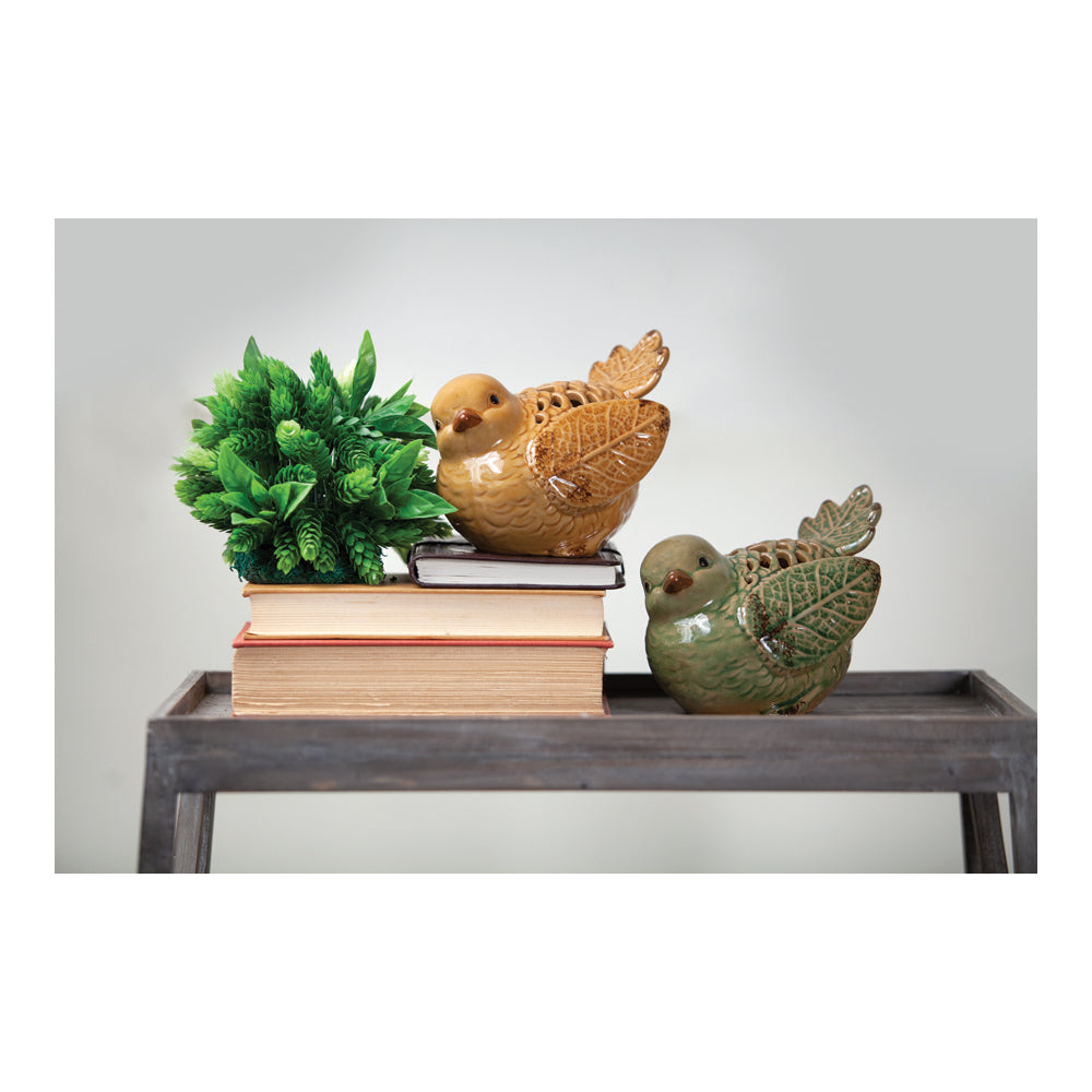 Decorative Caramel Ceramic Birds for Shelves – Set of 2 6.89" by Manual Woodworkers