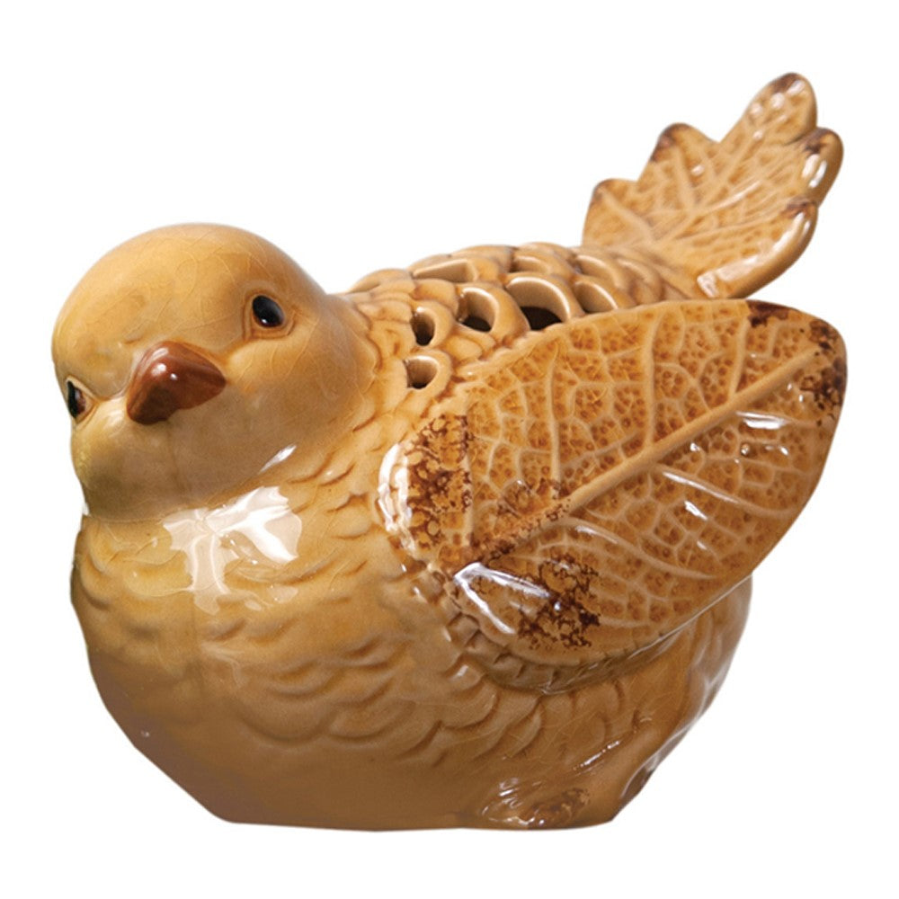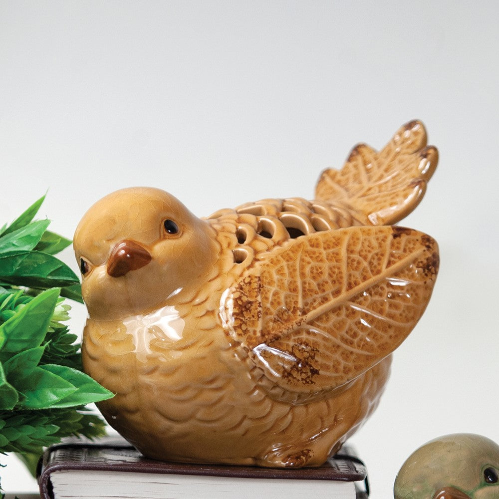SKU - MWWICIJICDecorative Caramel Ceramic Birds for Shelves – Set of 2 6.89" by Manual Woodworkers