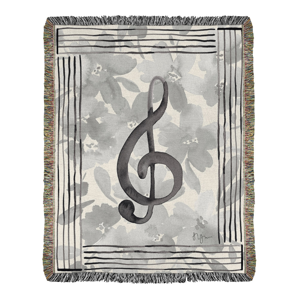 SKU - MWWAMNWFMusic Note with Flowers Treble 2.5-Layer Woven Throw Blanket, 50x60 Inches, Musical Themed Cotton Tapestry