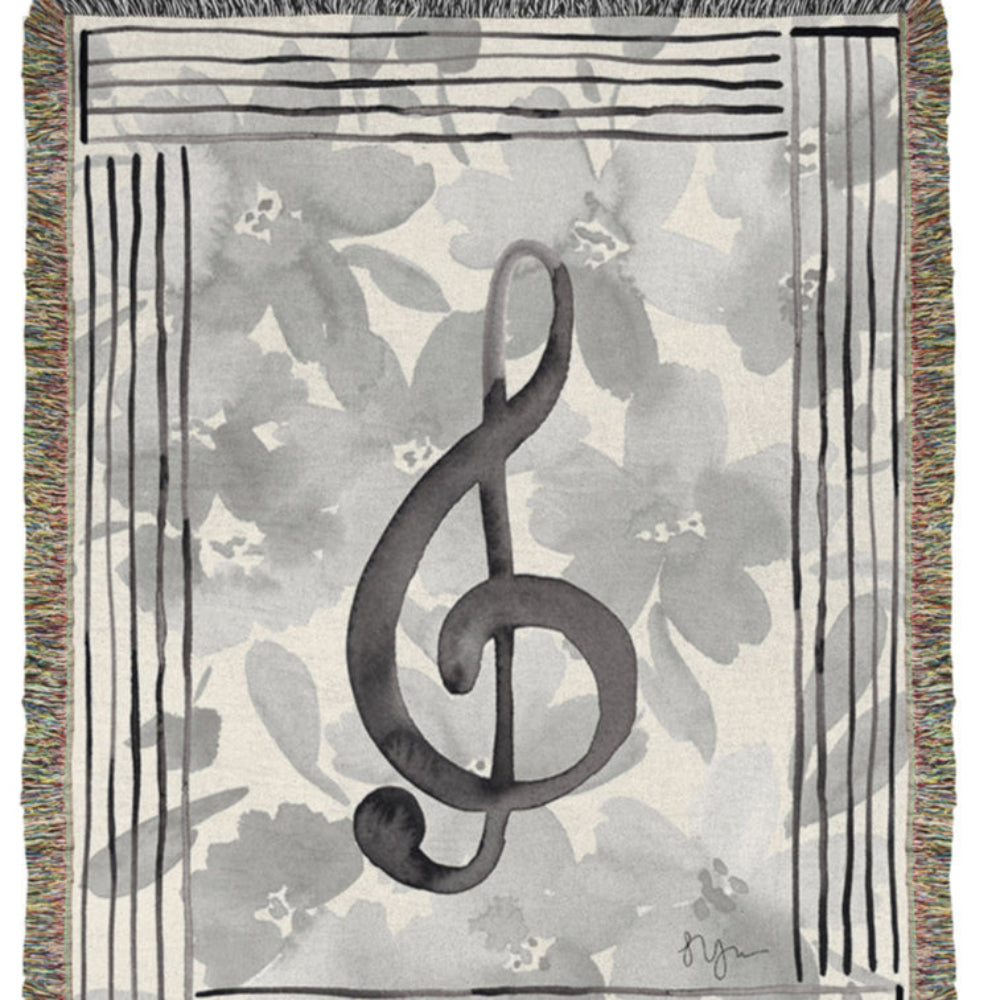 Manual Woodworkers and Weavers Music Note with Flowers Treble 2.5-Layer Woven Throw Blanket, 50x60 Inches, Musical Themed Cotton Tapestry