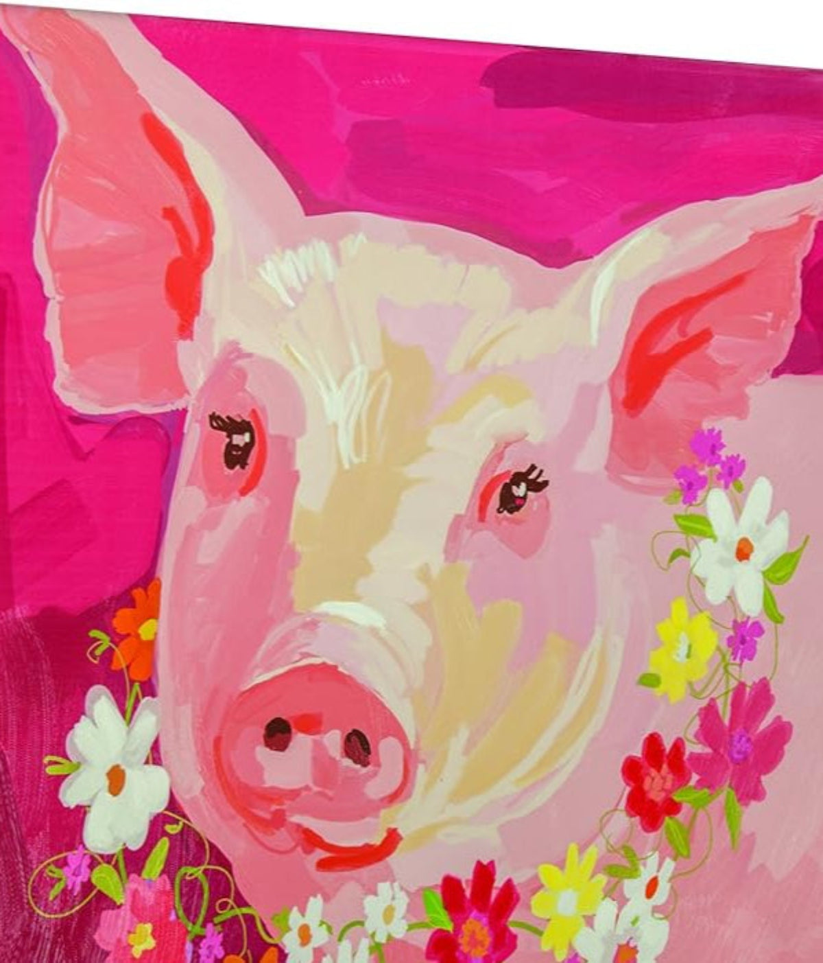 Add a splash of charm and countryside humor to your space with the Pinky Throw Pig Canvas Art by Manual Woodworkers and Weavers. This 32 x 32 inch square canvas features an adorable pig named Pinky, draped in a cozy pink throw, radiating personality and whimsy. Printed on high-quality stretched canvas with a gallery-wrapped finish, this piece is perfect for kitchens, farmhouse-style living rooms, or children’s rooms. It’s a delightful blend of rural character and contemporary wall decor, guaranteed to make any viewer smile.