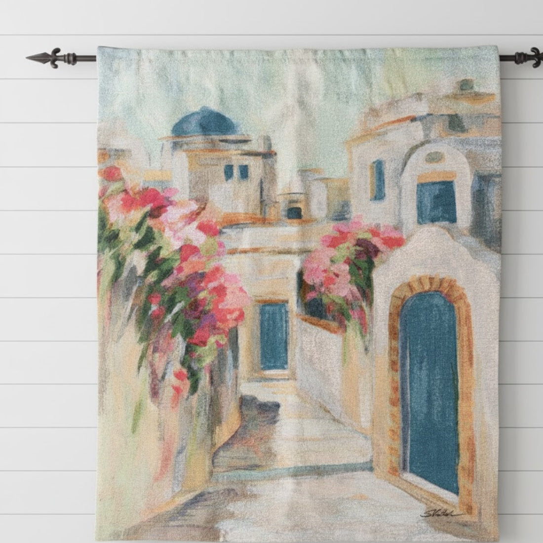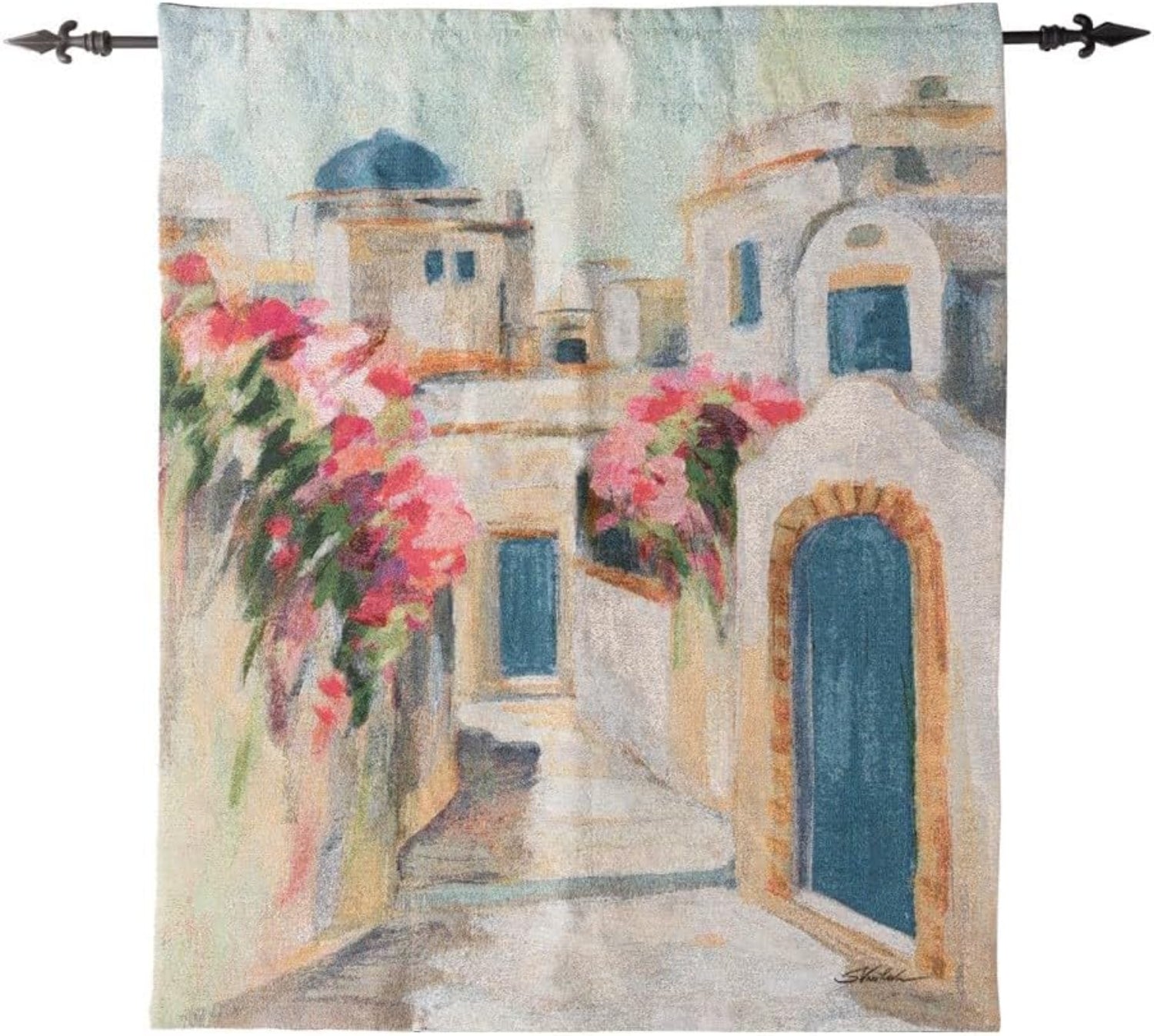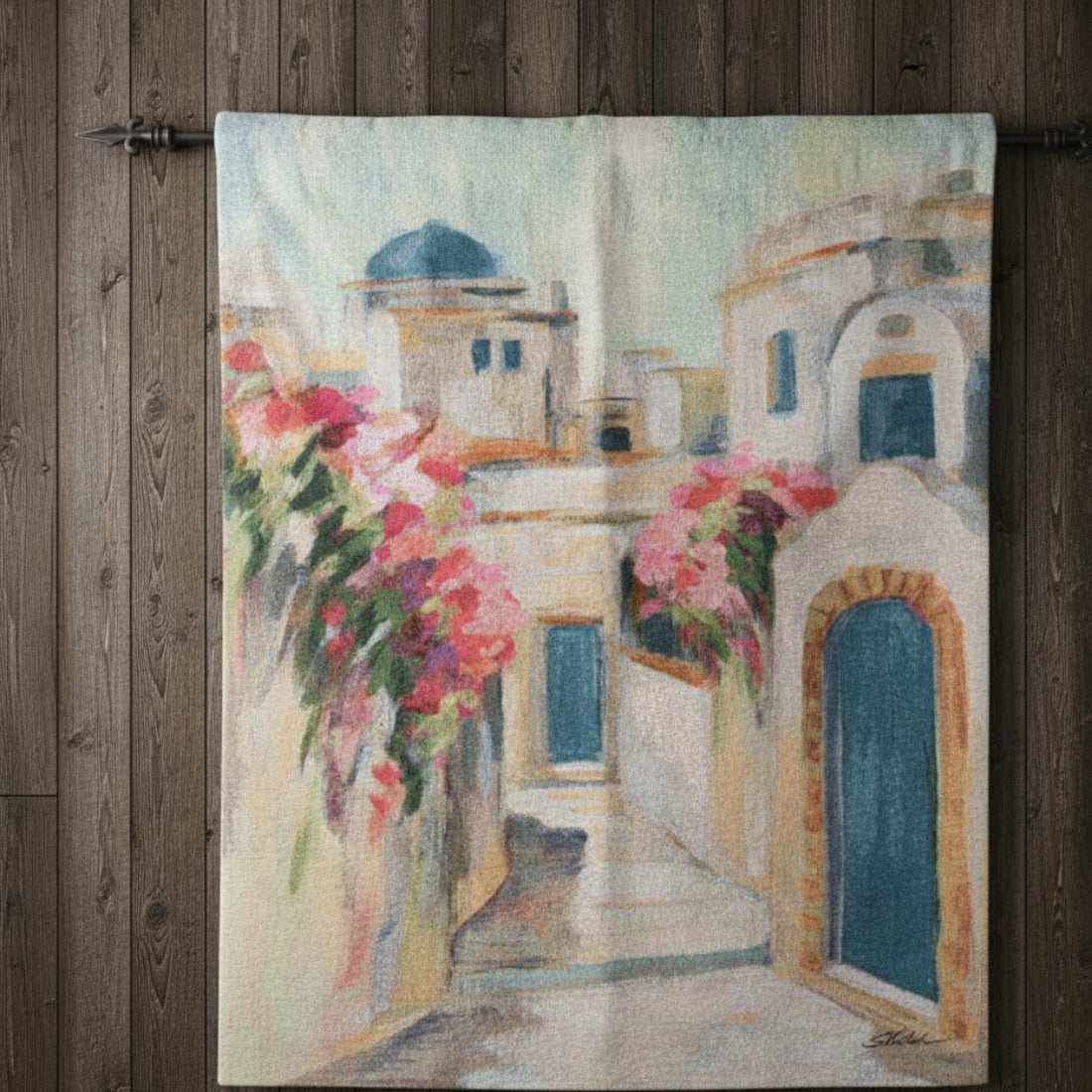 Polyester Wall Tapestry Santorini Street I – 35x42 inch by Manual Woodworkers