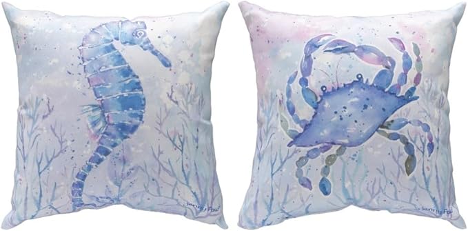 Bring the ocean to your outdoor space with the 18x18 Sea Creatures Climaweave Throw Pillow from Manual Woodworkers and Weavers. This pillow features a playful underwater design filled with charming marine life, including starfish, seahorses, coral, and shells. With a soft coastal color palette and durable Climaweave fabric, it’s perfect for brightening up patios, porches, or poolside lounges. Designed for outdoor use, this cushion resists moisture and fading while adding a touch of beachside whimsy to your decor.