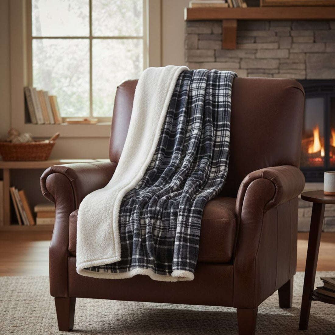 - Double-Sided Warmth: Fleece plaid front and soft sherpa back offer year-round comfort